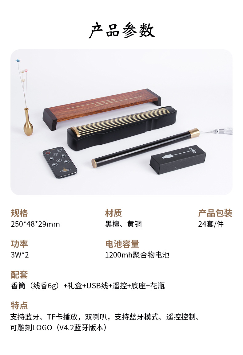 古琴蓝牙音响香具六件套 红木香具沉香插文创礼品理佛静心礼品