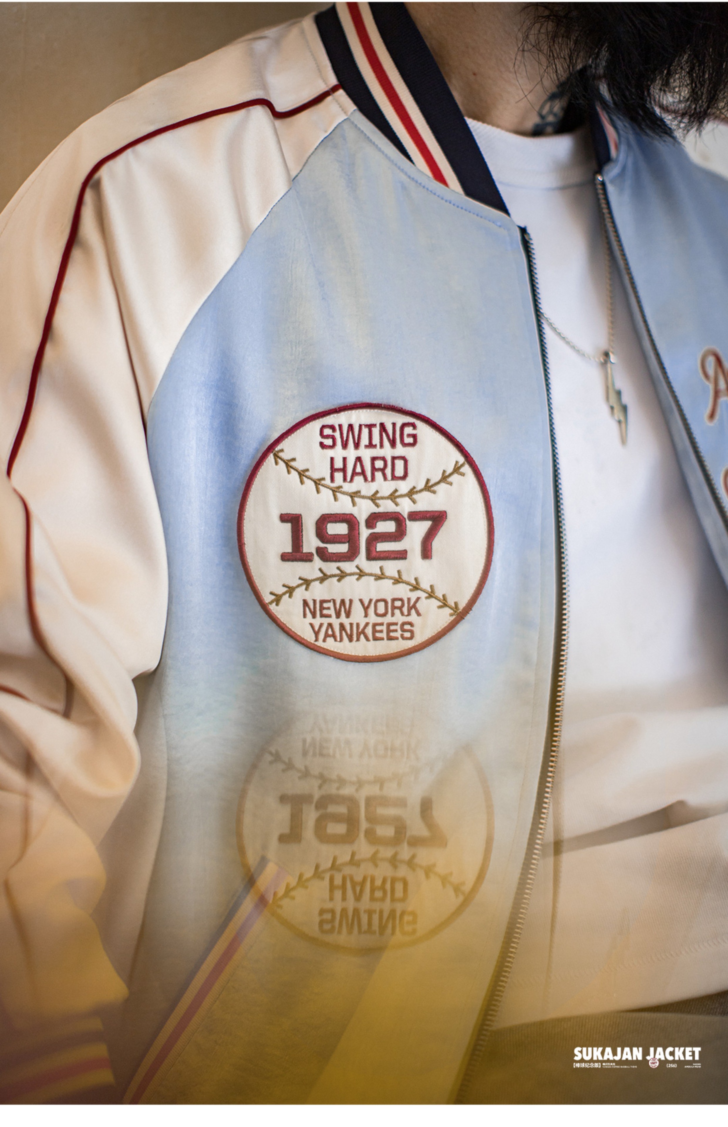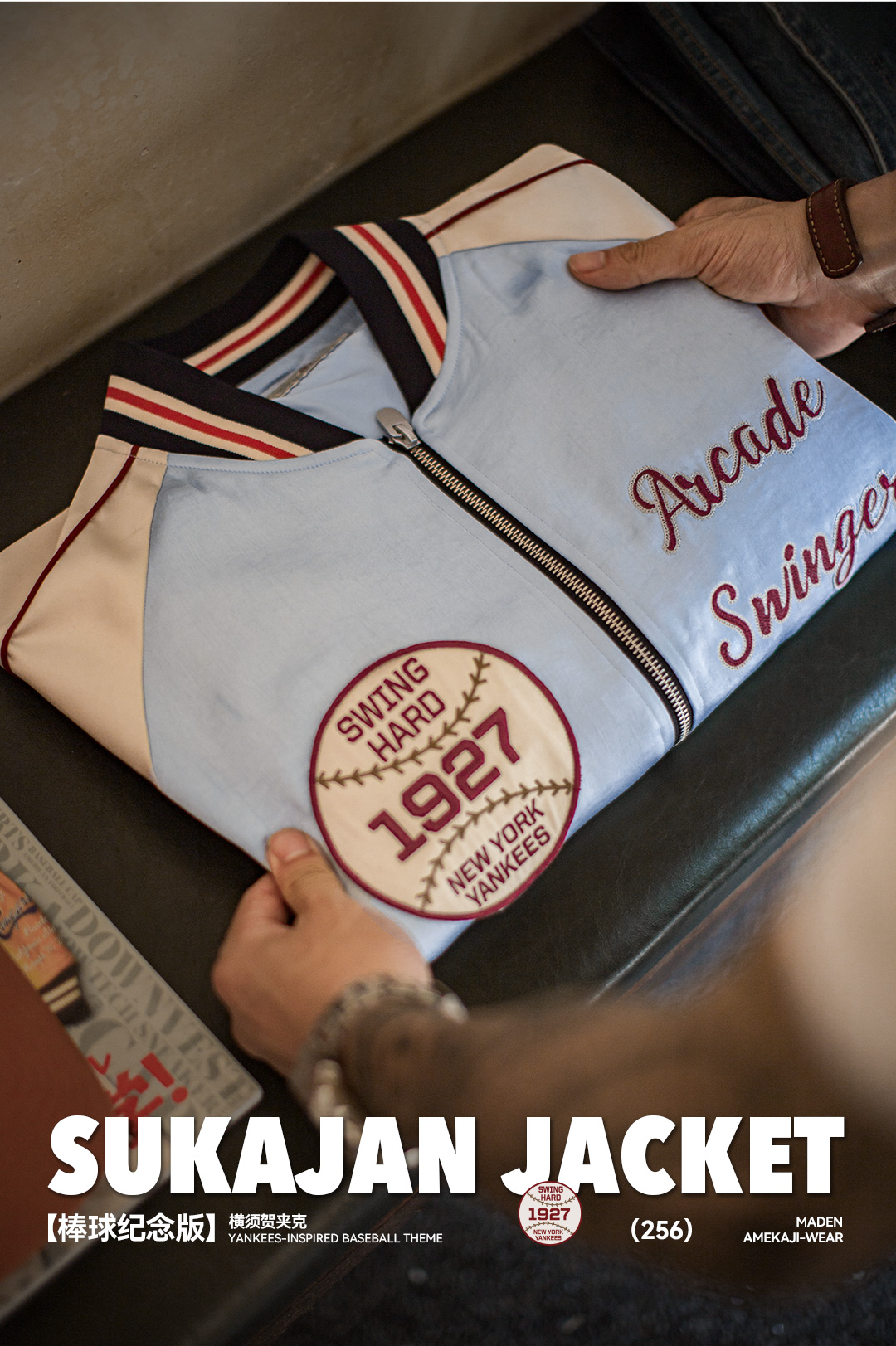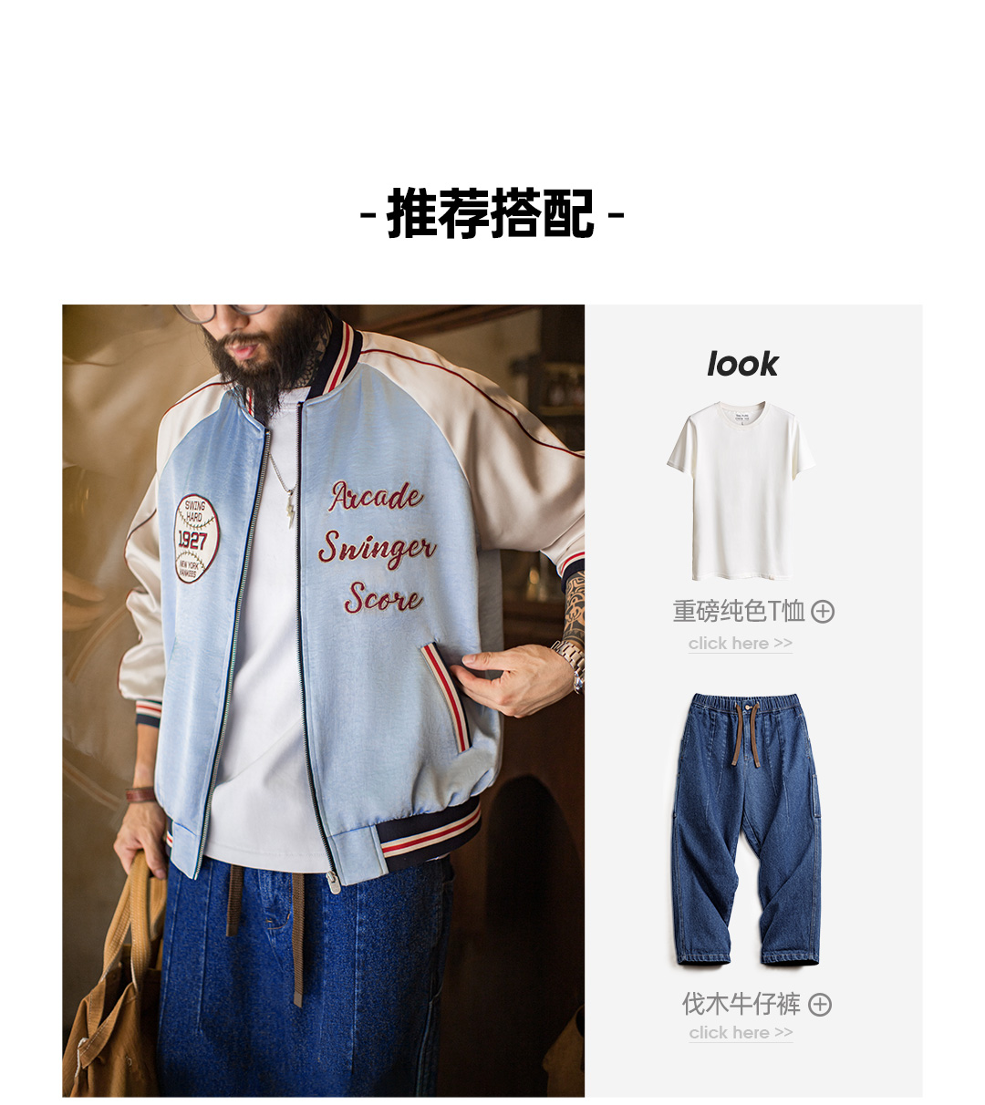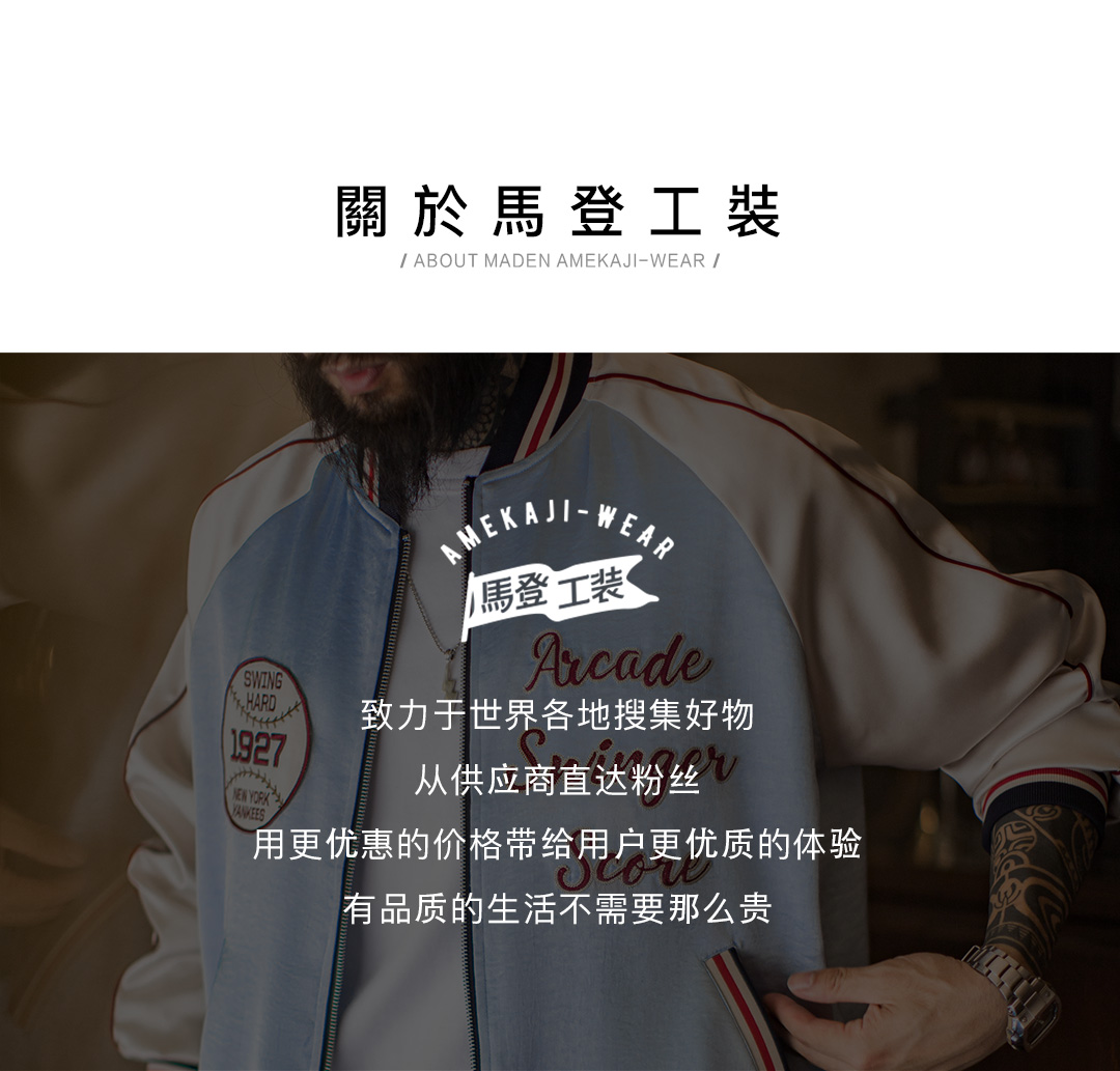 马登工装美式复古刺绣横须贺棒球服夹克拼接痞帅缎面外套短款男秋