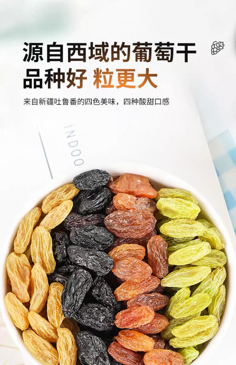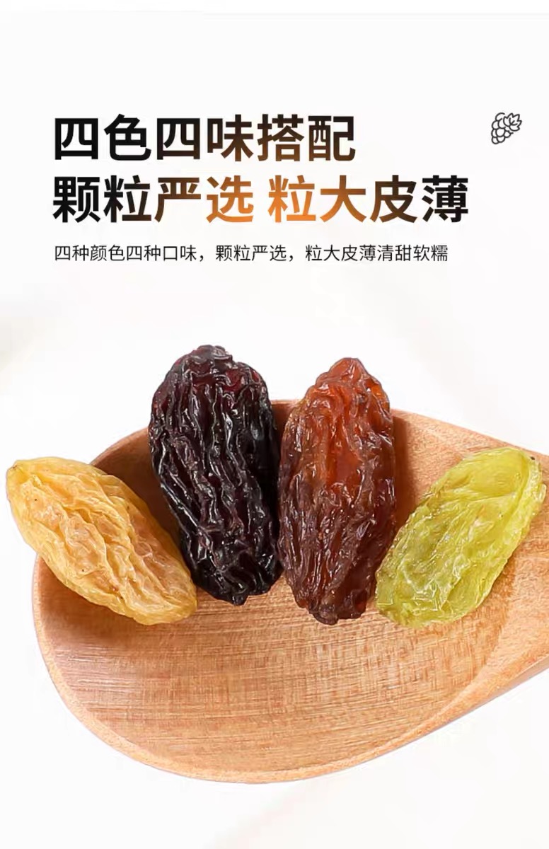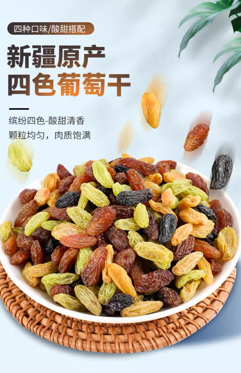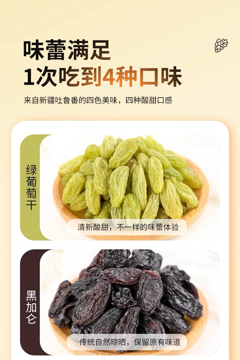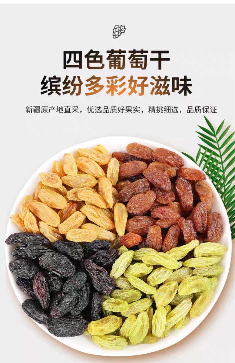 新疆多彩葡萄干 一把尝尽吐鲁番4种风味 自然晾晒 果大饱满