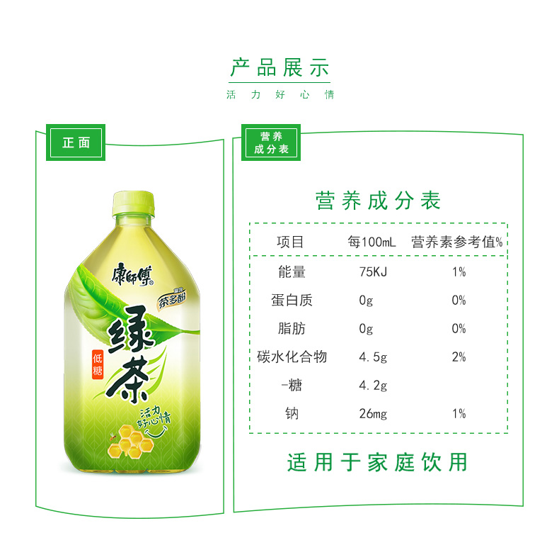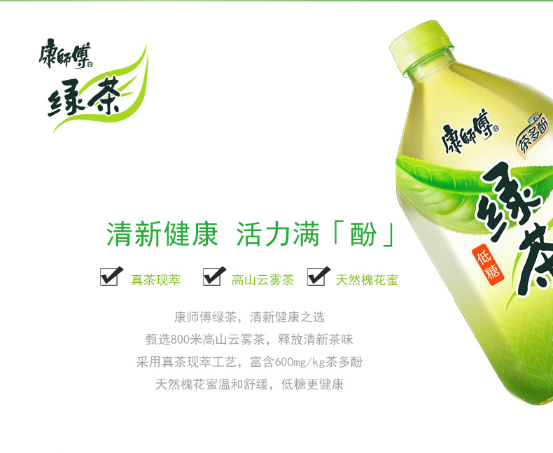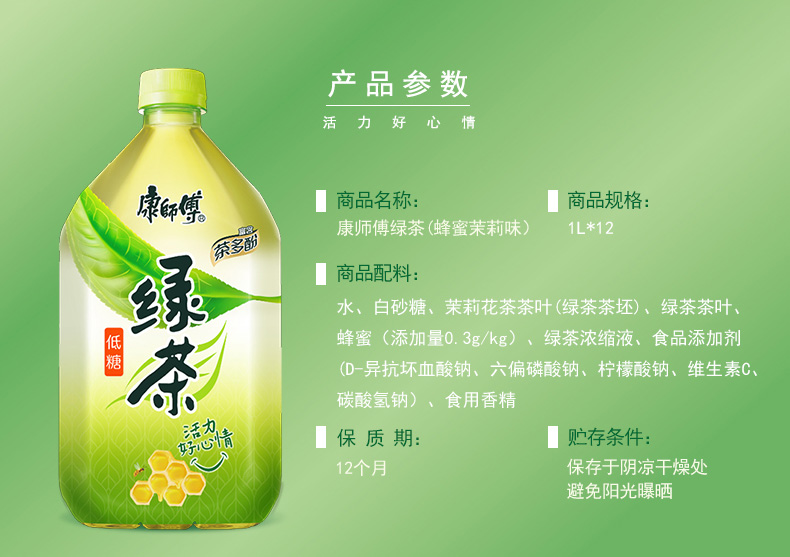 康师傅低糖 绿茶(蜂蜜茉莉味)果味茶饮料1L
