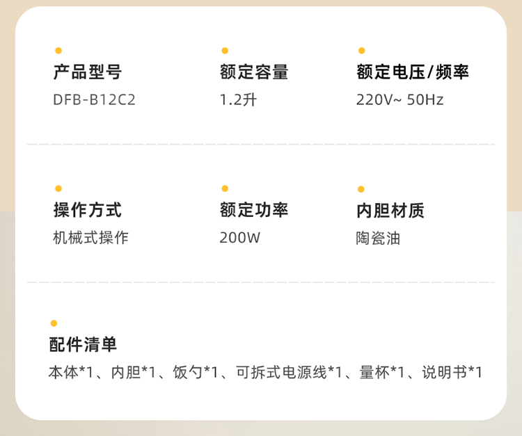 小熊1.2L小容量电饭煲1-2人用 DFB-B12C2