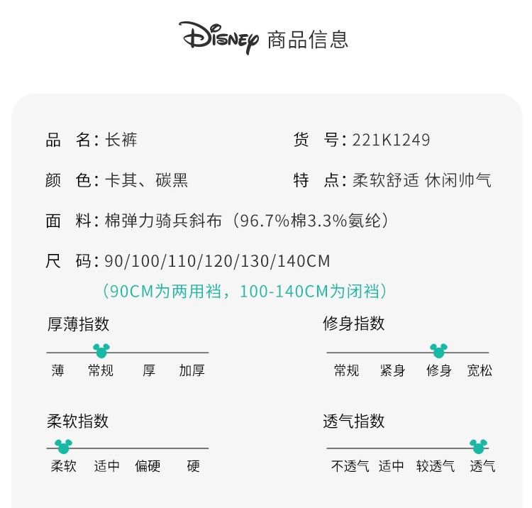 迪士尼童装男童裤子儿童工装裤中小童男孩春秋款帅气新款潮221K1249