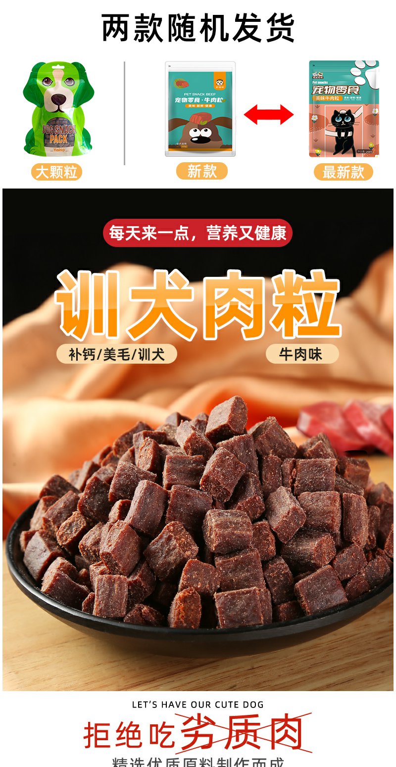 瓜洲牧【新旧包装随机】蛋黄牛肉粒幼犬小型犬泰迪金毛训狗训练奖励冻干牛肉粒250克/袋
