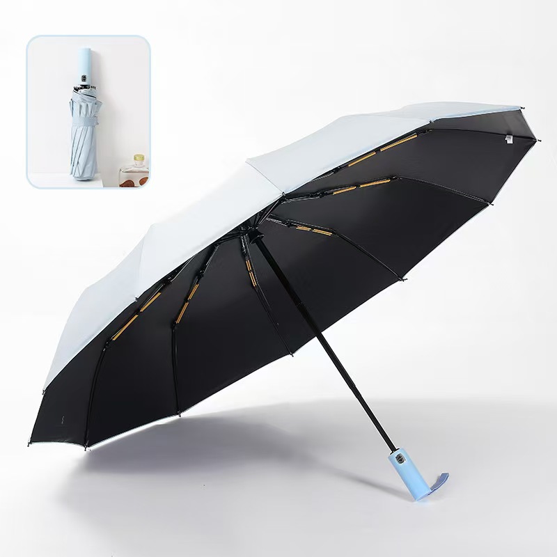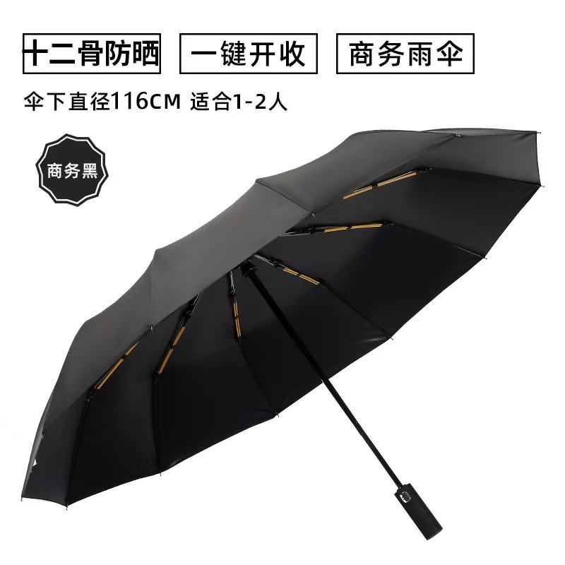 无惧暴雨天气,黑漆钢纤维伞架,加固韧性抗风骨架,耐腐蚀。不易折断轻松应对多变气候,配色手柄,自动开合,精致伞帽,松紧可调,轻松防晒,黑胶伞布。