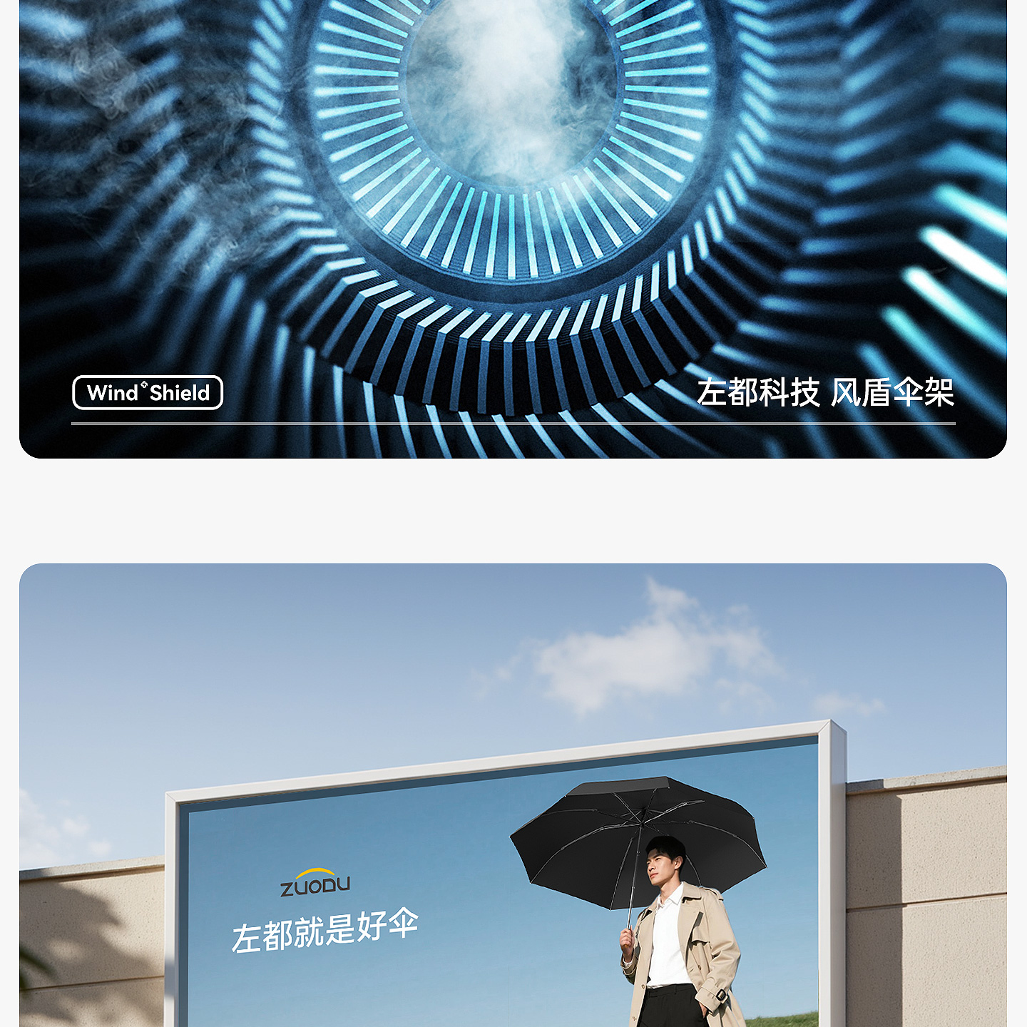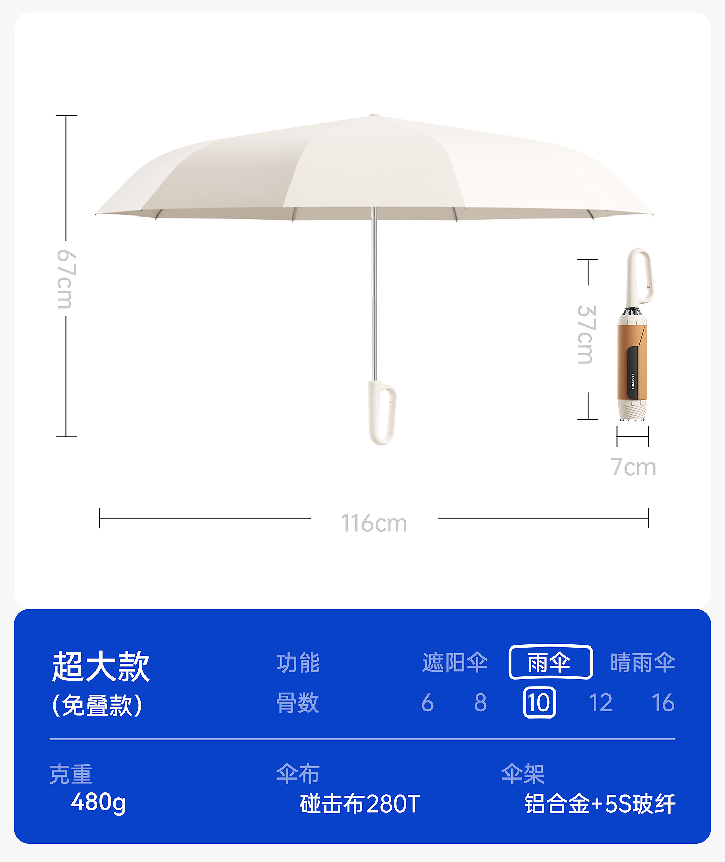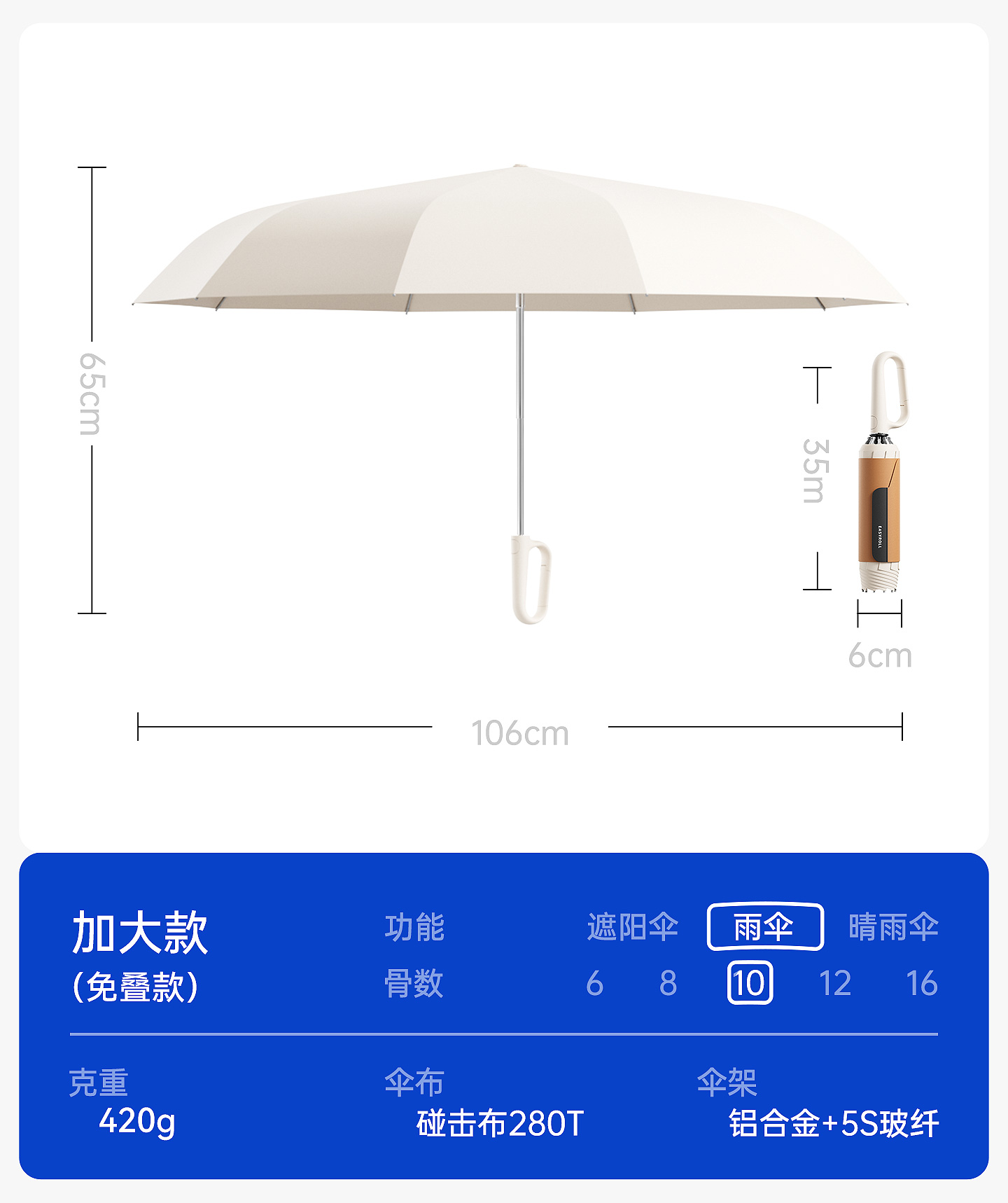 ZUODU左都 环扣全自动 超宽绑带免折叠 专用防风 雨伞
