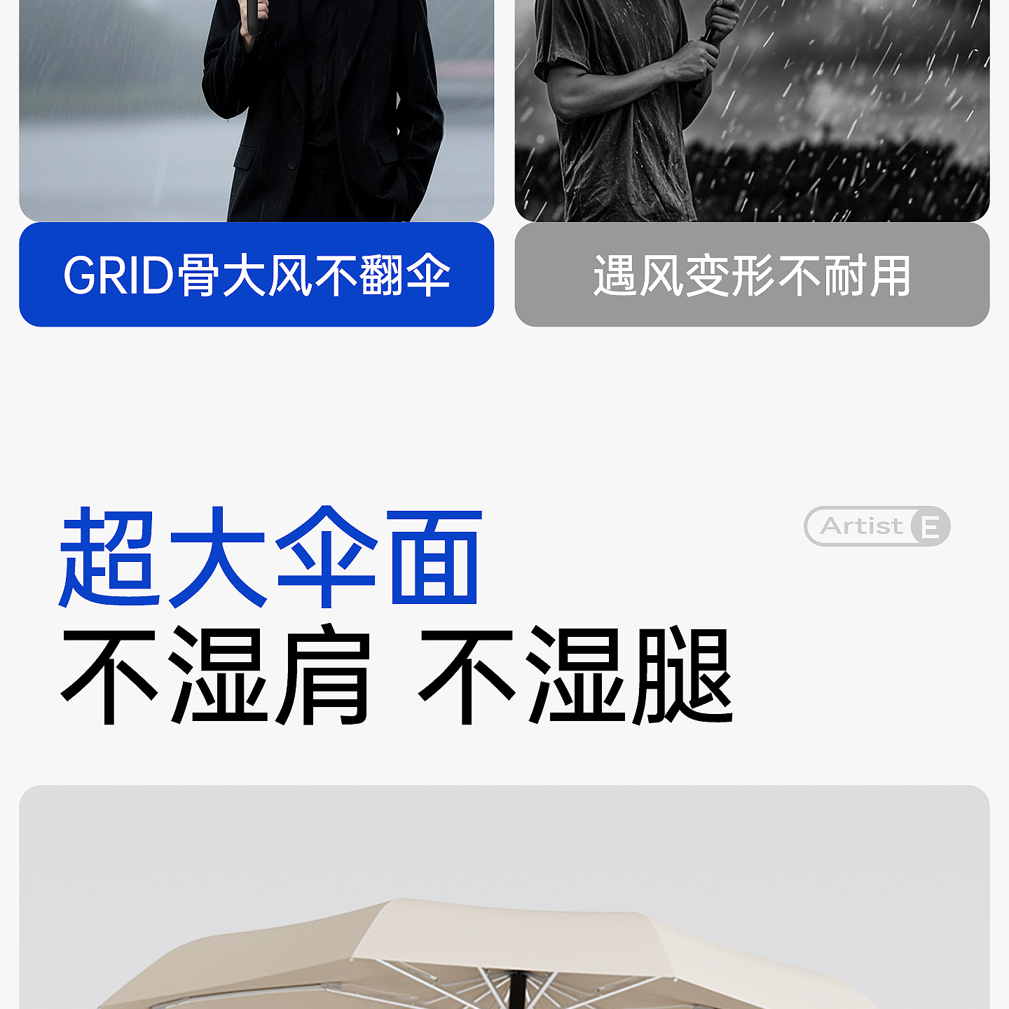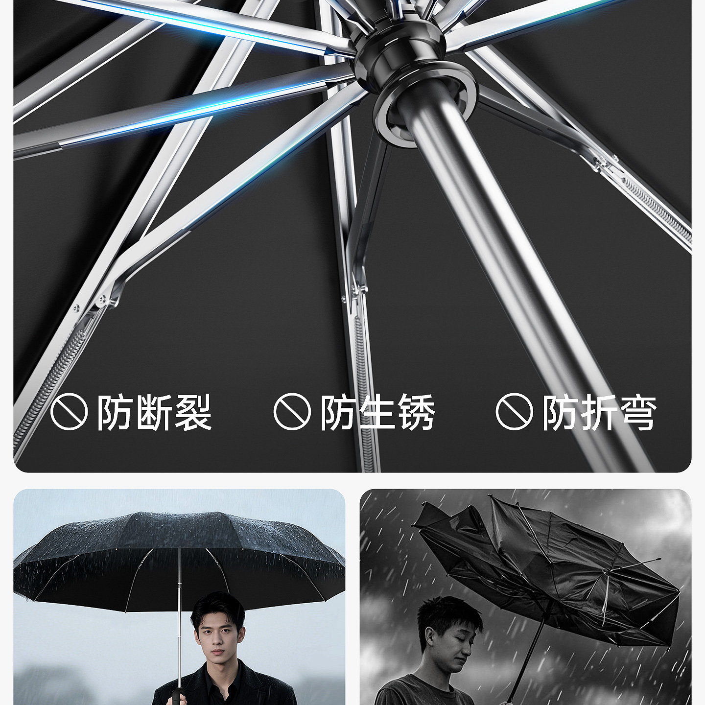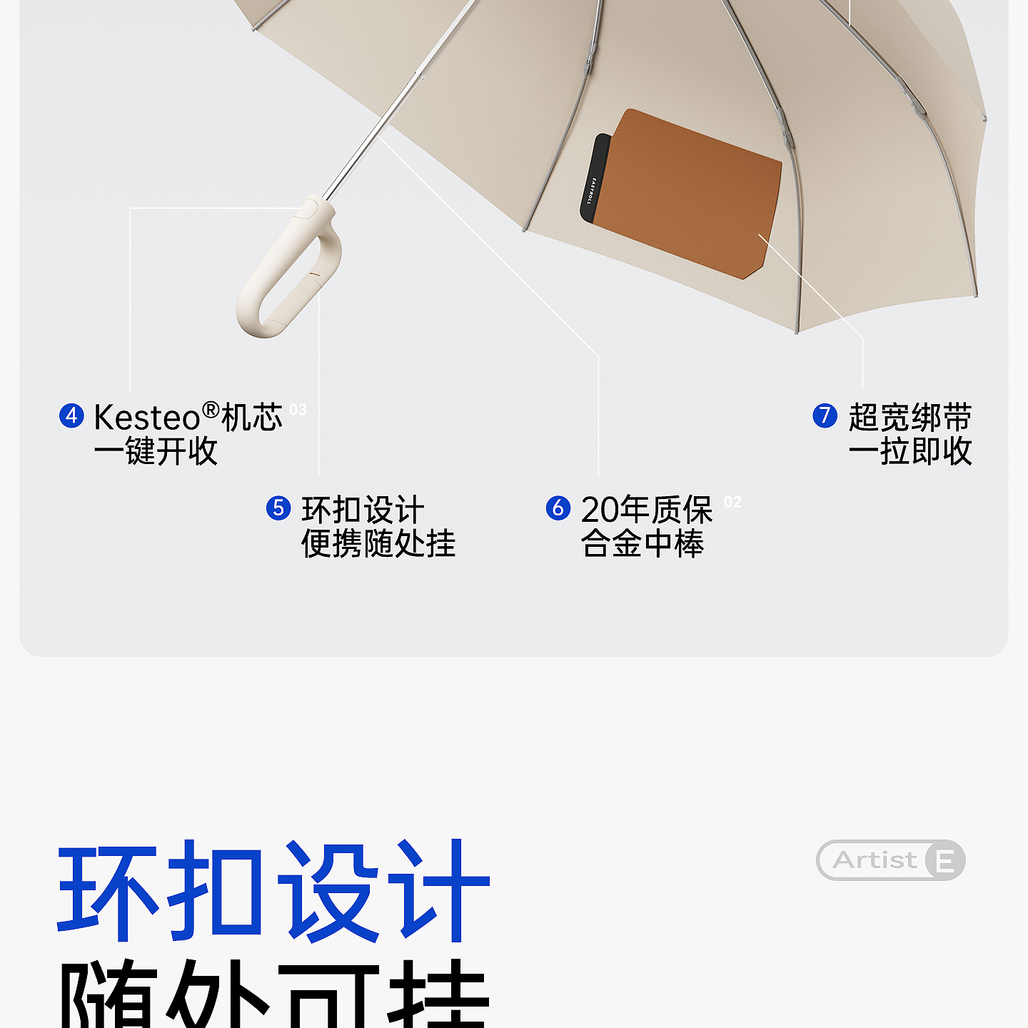 ZUODU左都 环扣全自动 超宽绑带免折叠 专用防风 雨伞
