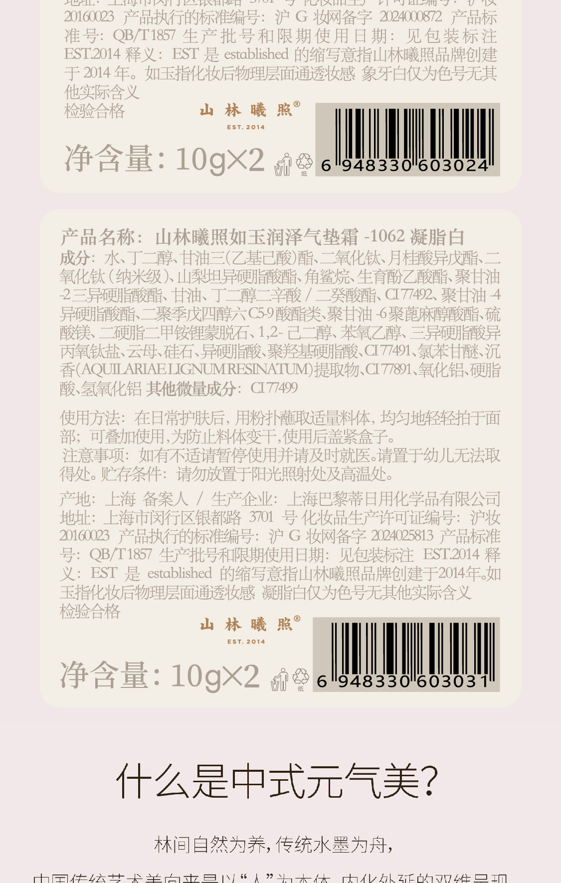 山林曦照 如玉 润泽气垫霜(加送替换装)提亮贴肤持妆