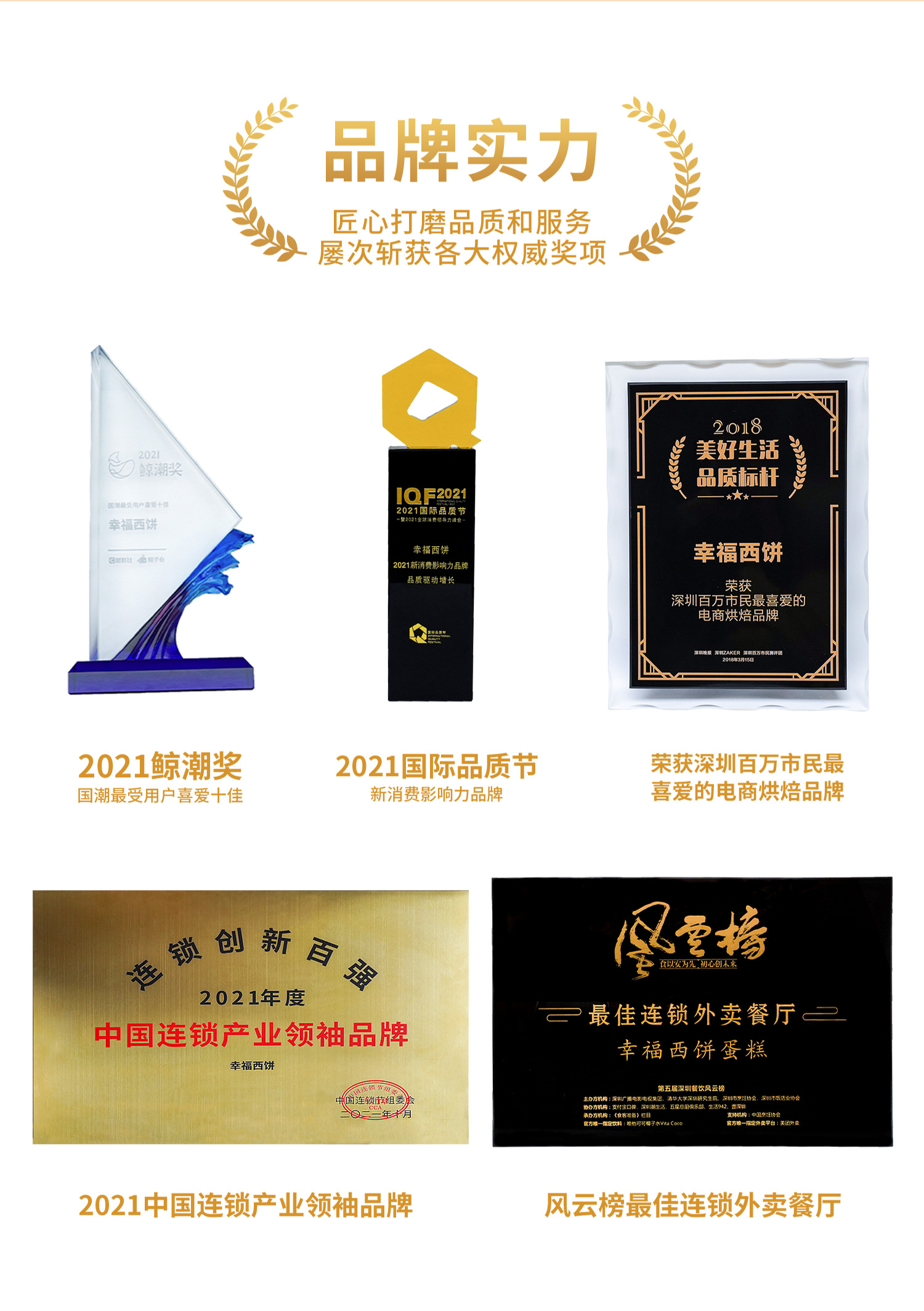- 幸福西饼就是新鲜准时,覆盖全国300多个城市,2亿人次品尝过的好蛋糕,采用新鲜淡奶油,降低甜度更健康!