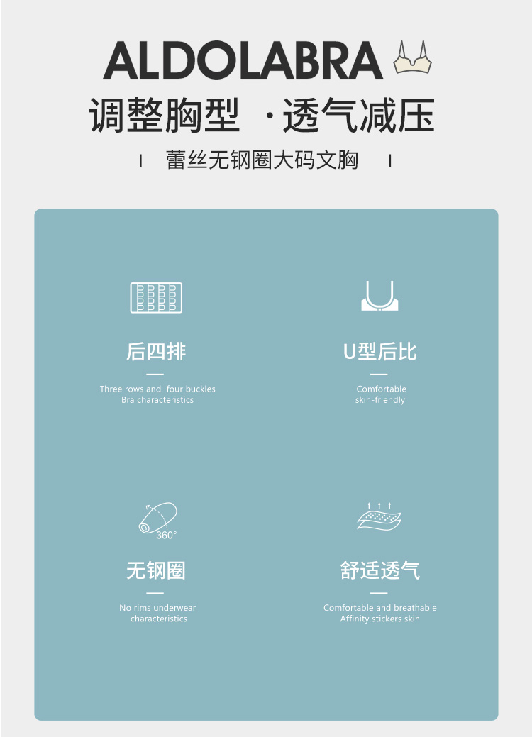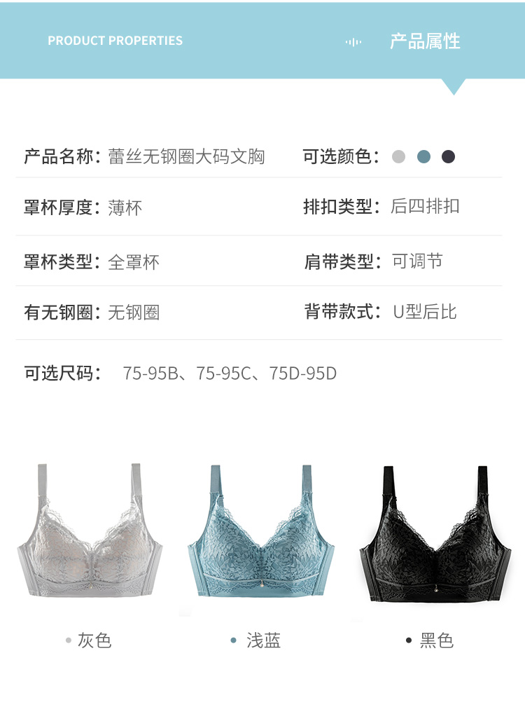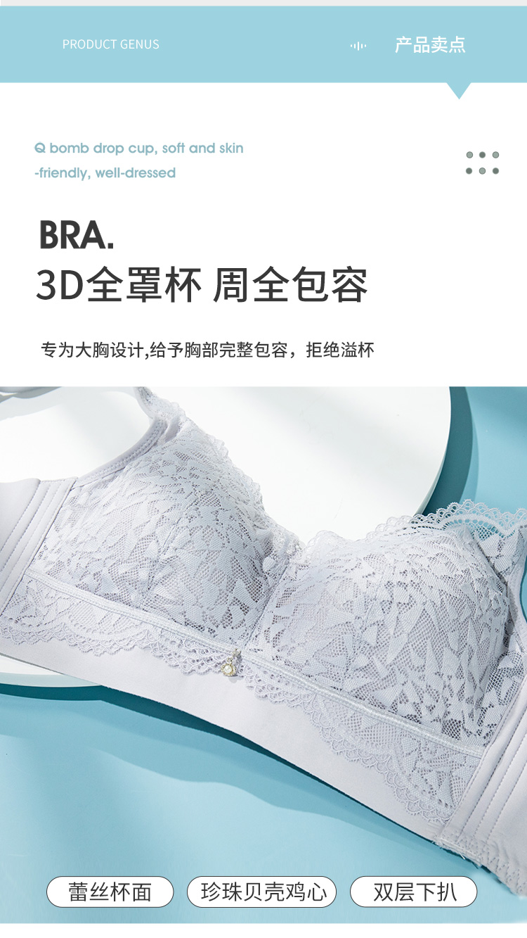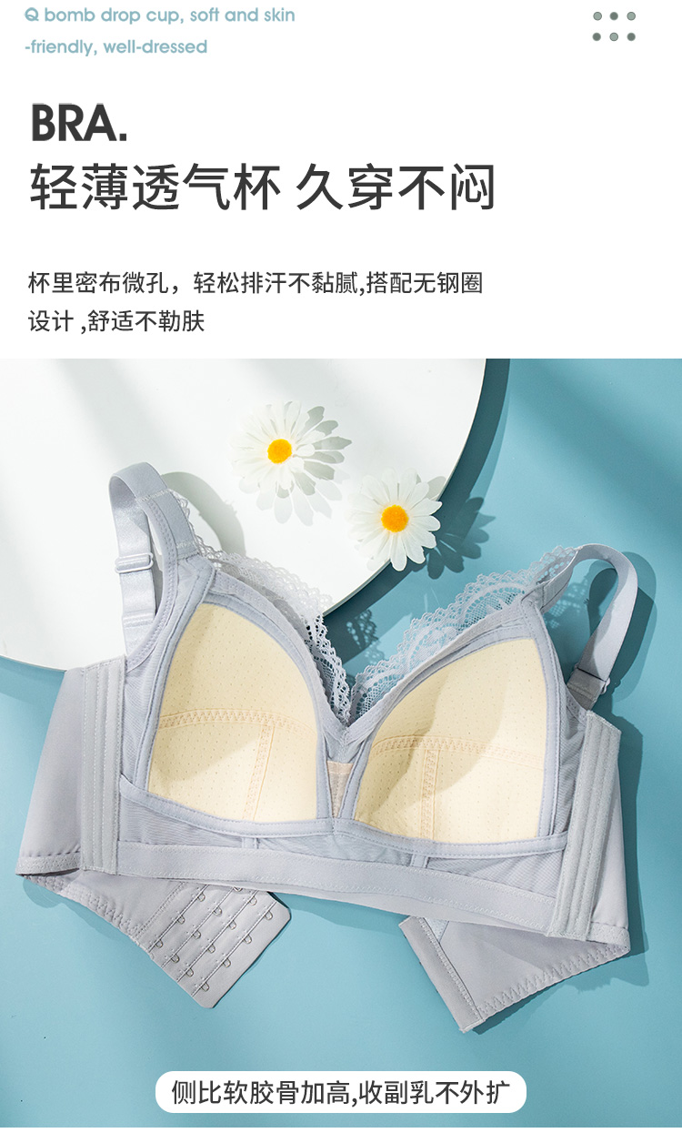 雅黛丽内衣薄款透气显胸小缩胸防下垂胸罩蕾丝无钢圈大码文胸