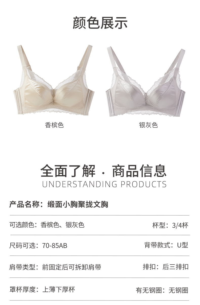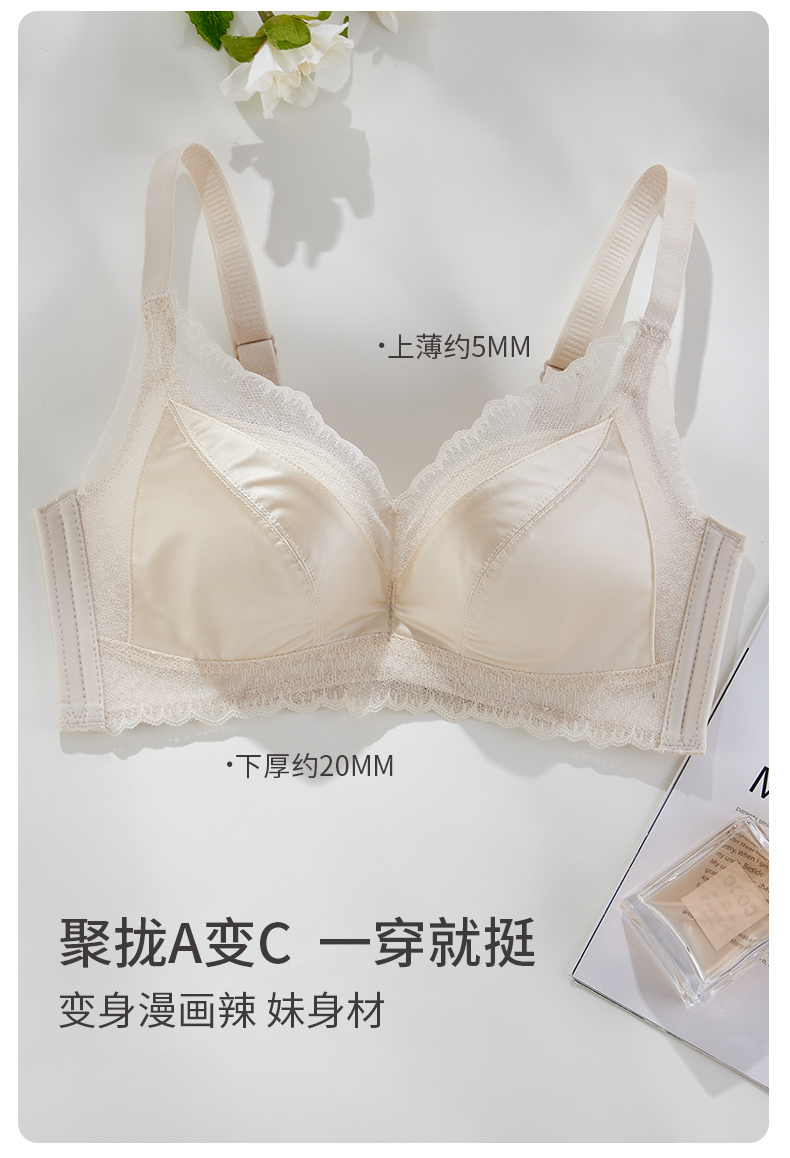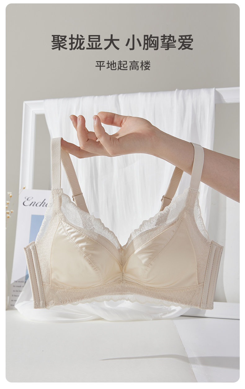 雅黛俪内衣女复古缎面小胸聚拢显大无钢圈舒适柔软纯欲精致收副乳文胸