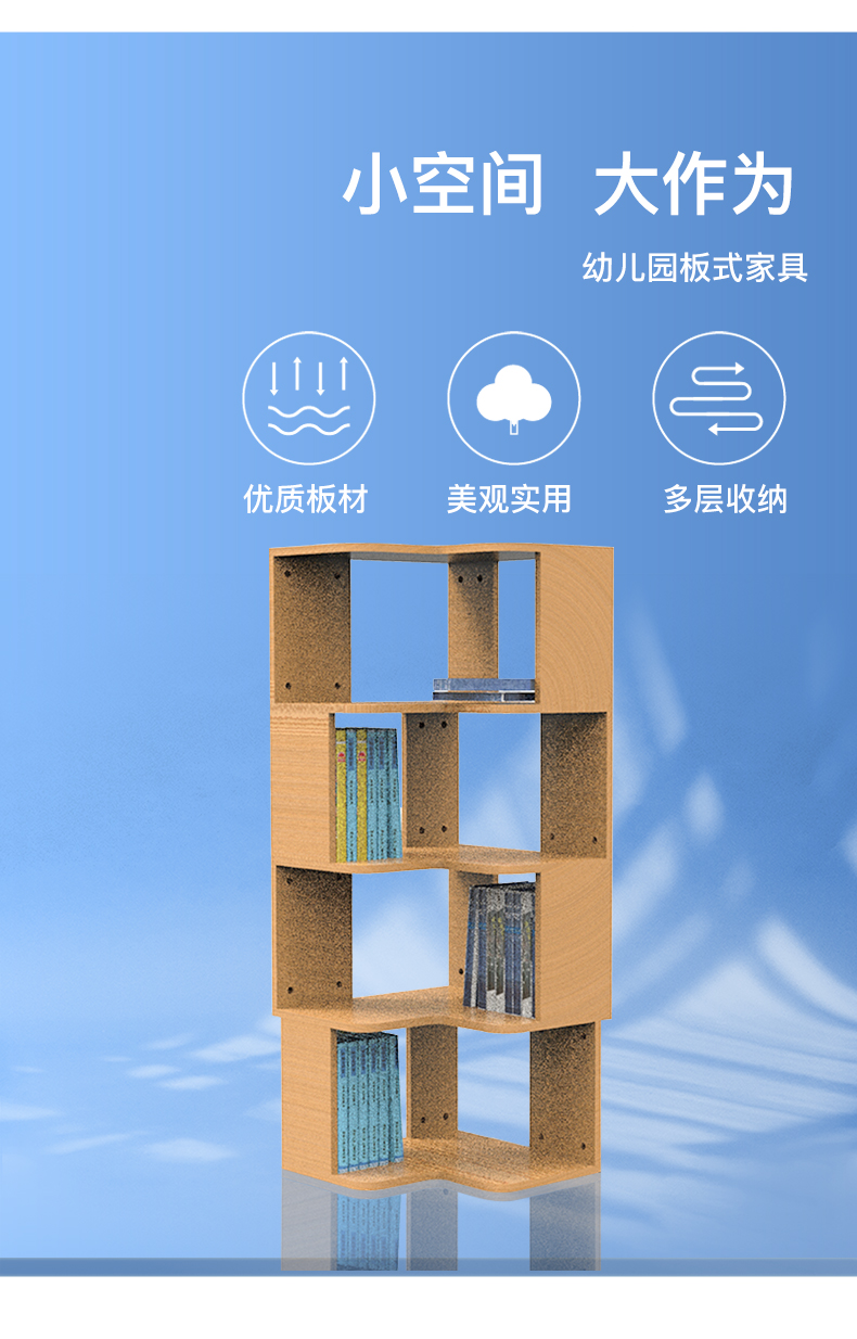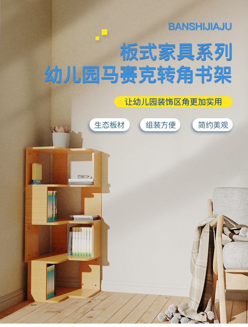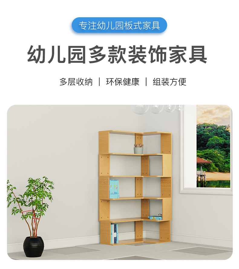 马赛克转角书架幼儿园转角处创意马赛克落地置物架书架