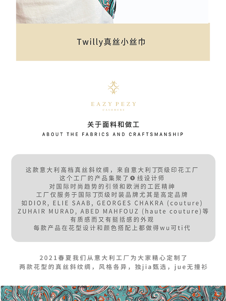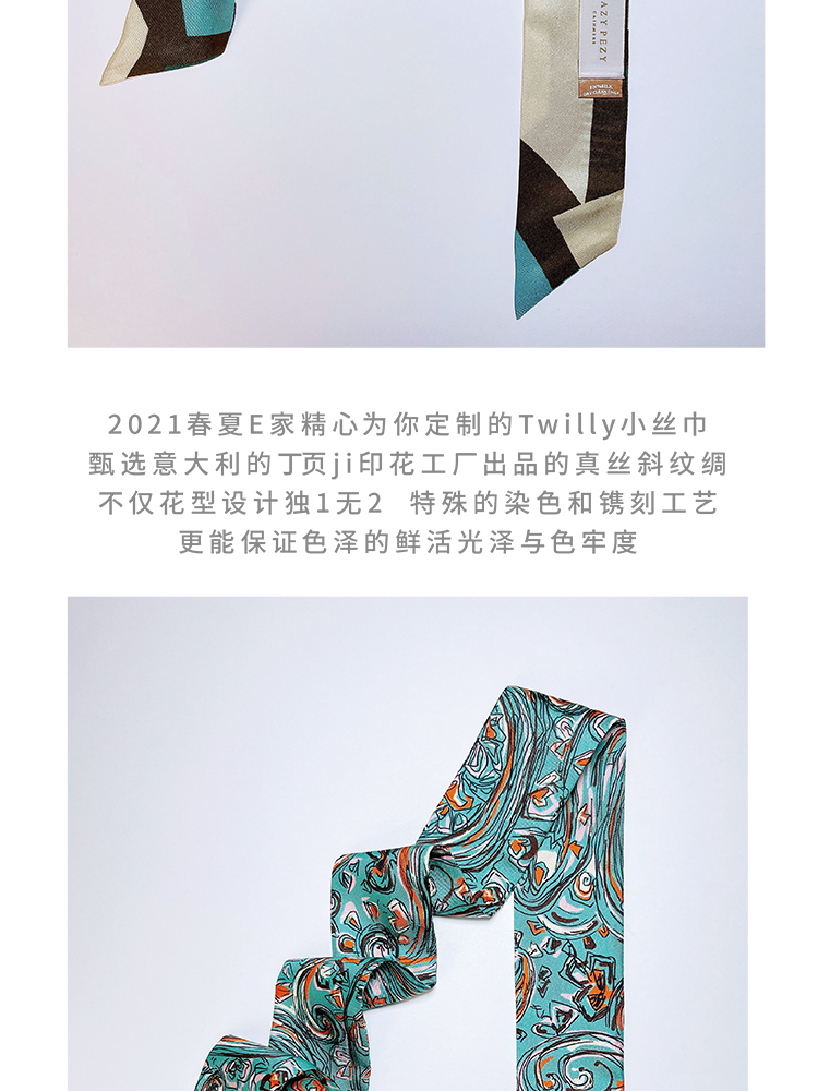 Eazypezy 意大利进口Twilly真丝印花小丝巾