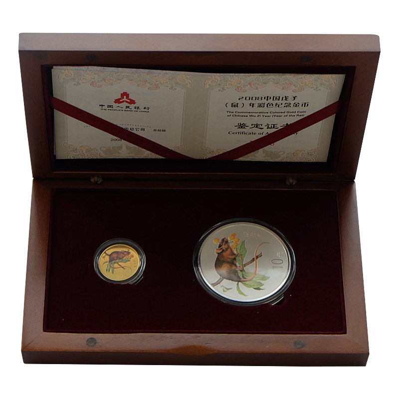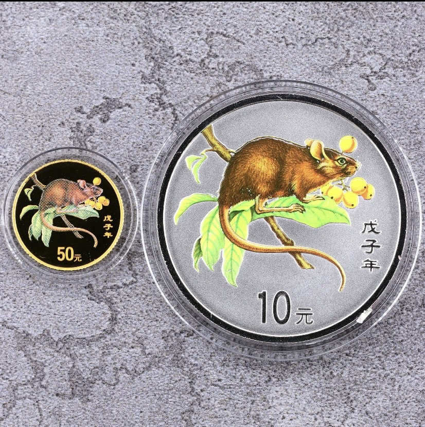 河南中钱 中国金币 2008鼠年生肖金银纪念币1盎司彩色银币 彩银鼠