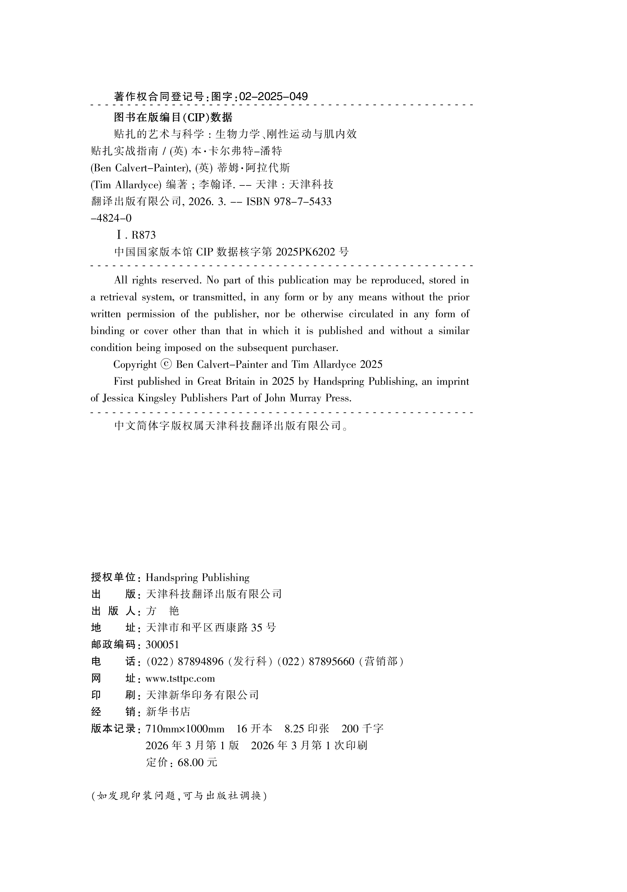 《贴扎的艺术与科学:生物力学、刚性运动与肌内效贴扎实战指南》,16开,平装,90g铜版纸印刷,132页,68元,2026年3月出版。