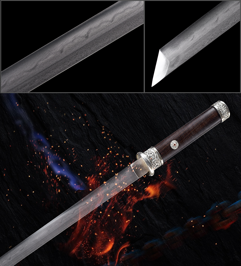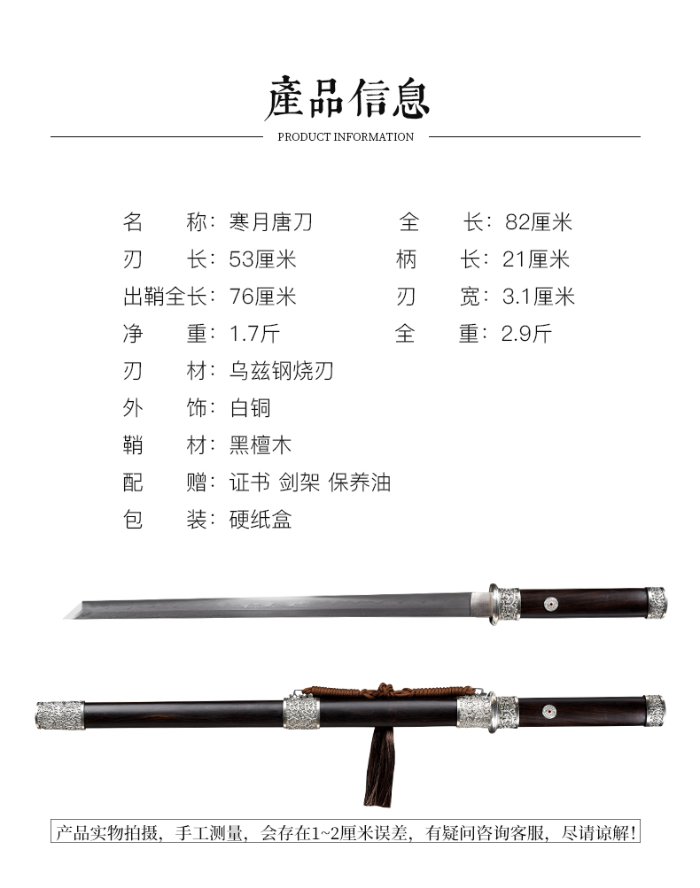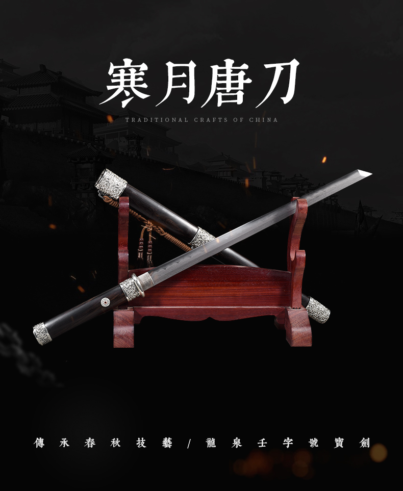 寒月唐刀 汉唐刀剑 花纹钢 龙泉沈广隆宝剑 一体刀剑 未开刃