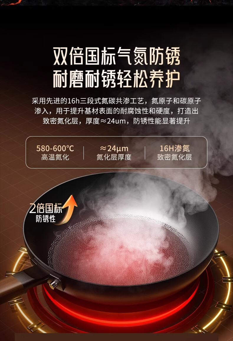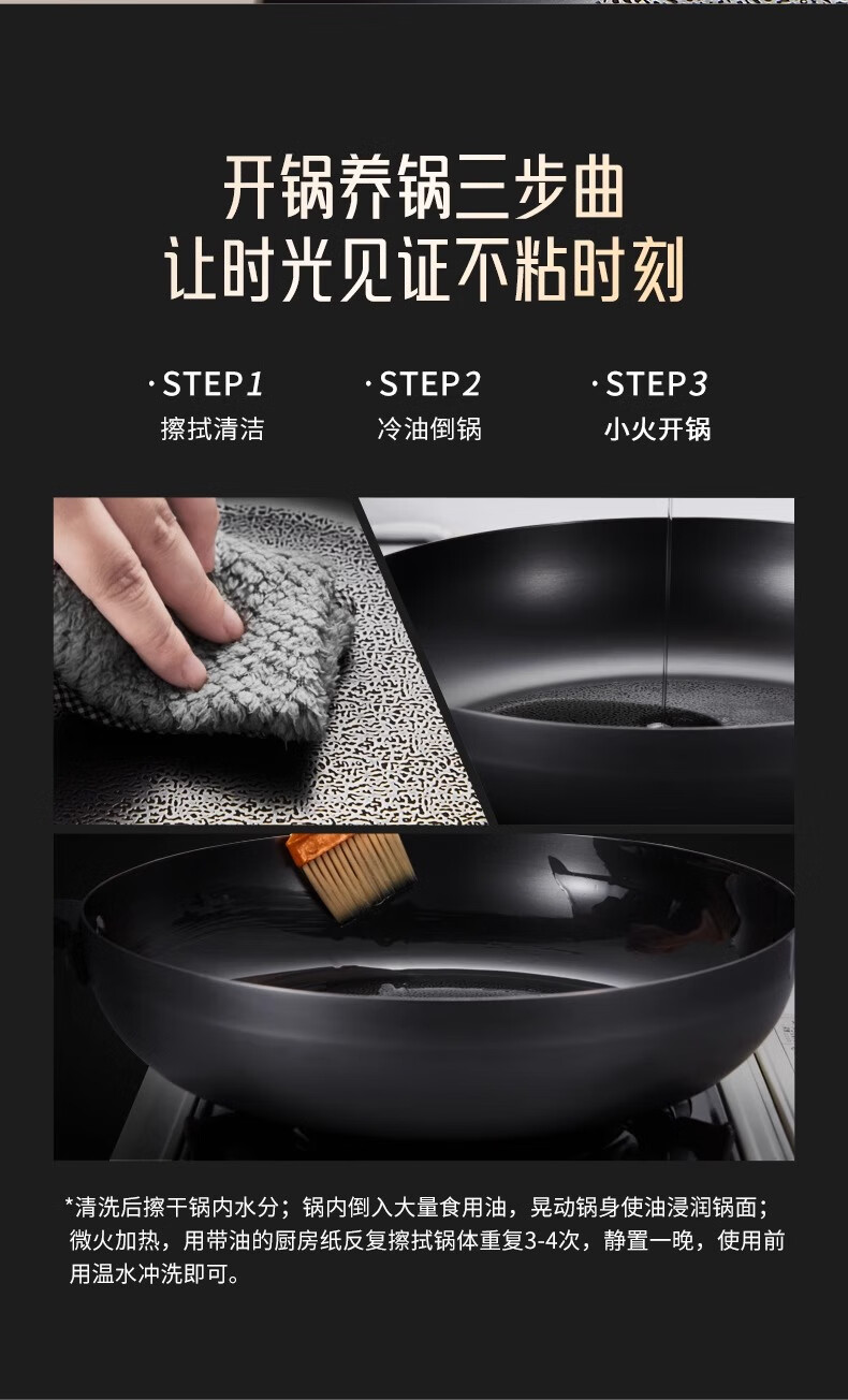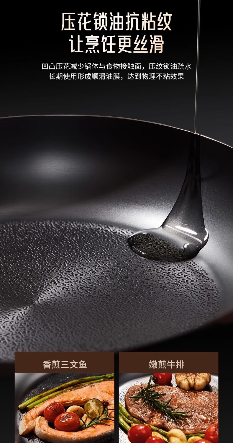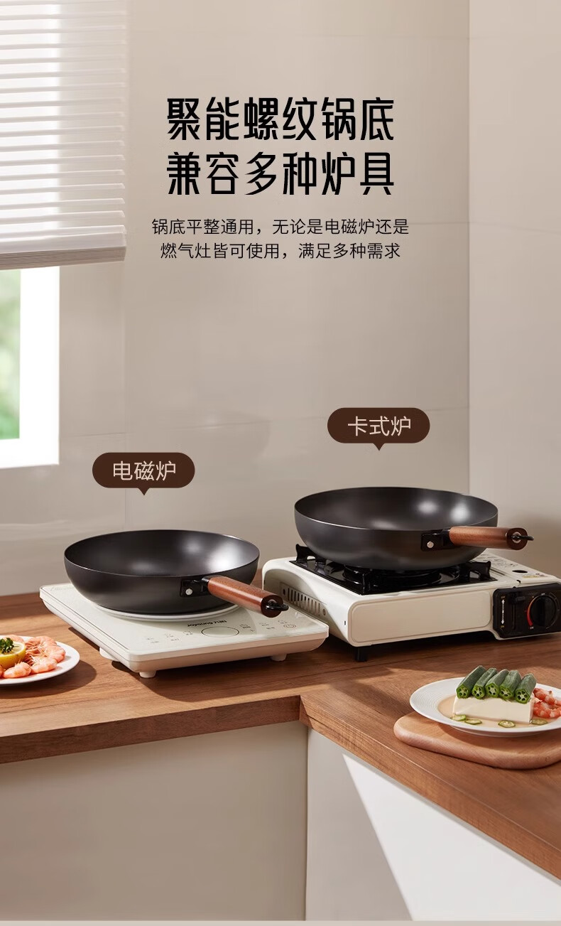 九阳精铁深煎锅0无涂层平底炒菜锅老式家用燃气灶电磁炉通用铁锅
