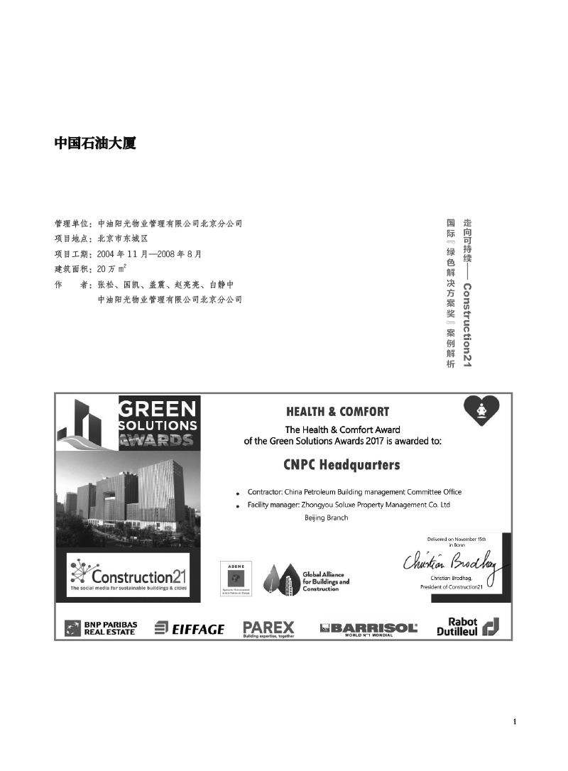走向可持续:Construction21国际“绿色解决方案 奖”案例解析 中国建筑科学研究院有限公司主编