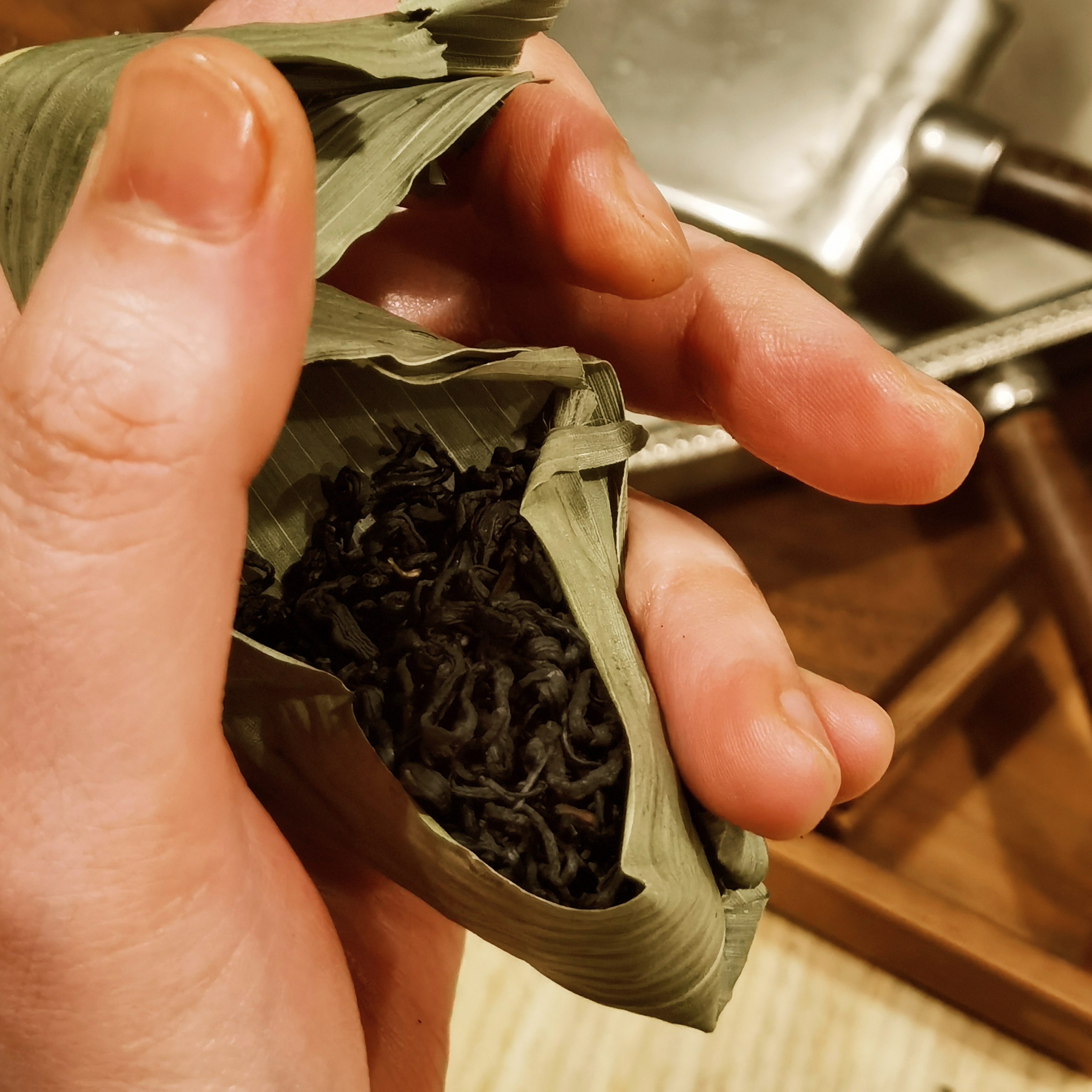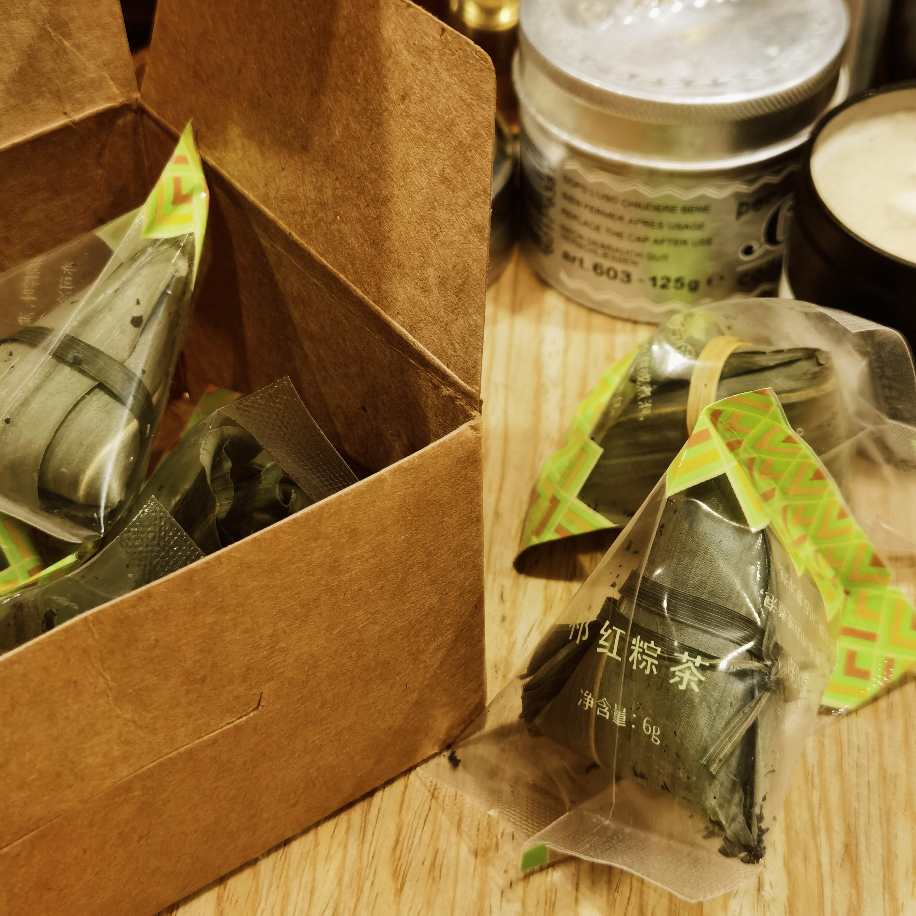 本着对啵啵杯的热爱,这几天把堆积着的一堆样品茶都试了,其中这颗皖南粽香茶,大大引起了我的注意,挺有意思,像一颗小粽子,太过可爱了!喝起来也相当不错,有粽香!