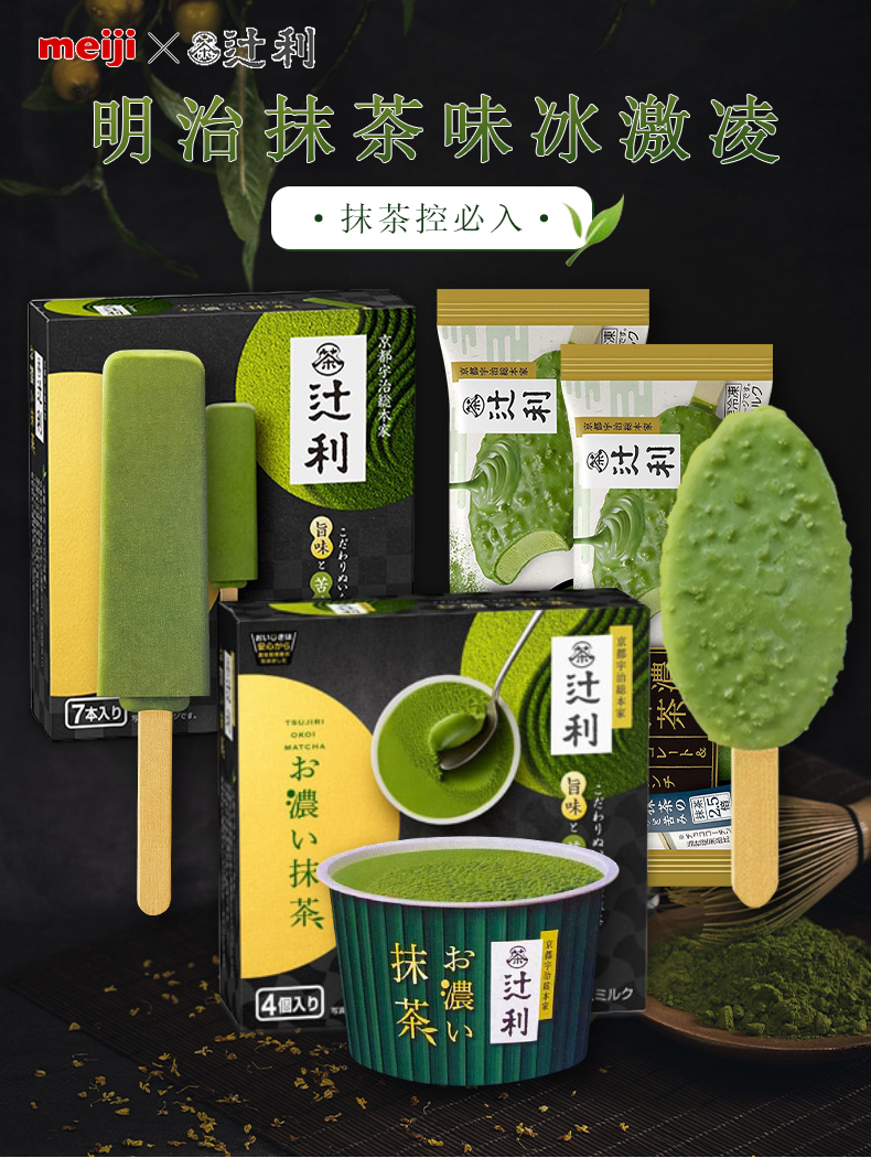 日本进口明治辻利抹茶杯装冰淇淋340ml雪糕冰糕批发