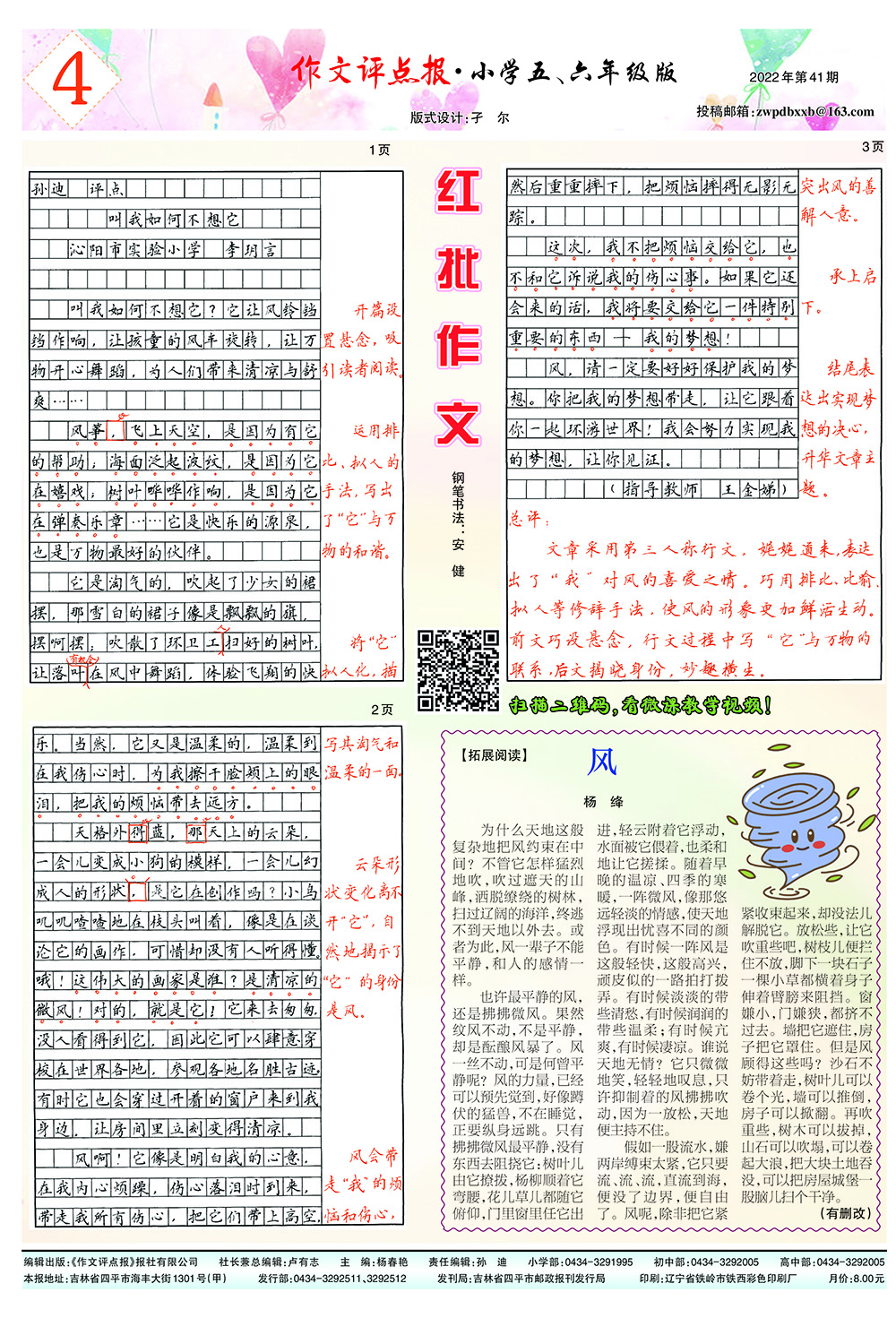 二、有声、视频同步讲解。扫描“红批有声、视频作文”栏目的二维码即可收听名师详解作文或观看微课教学视频,让作文学习有“声”有“色”。