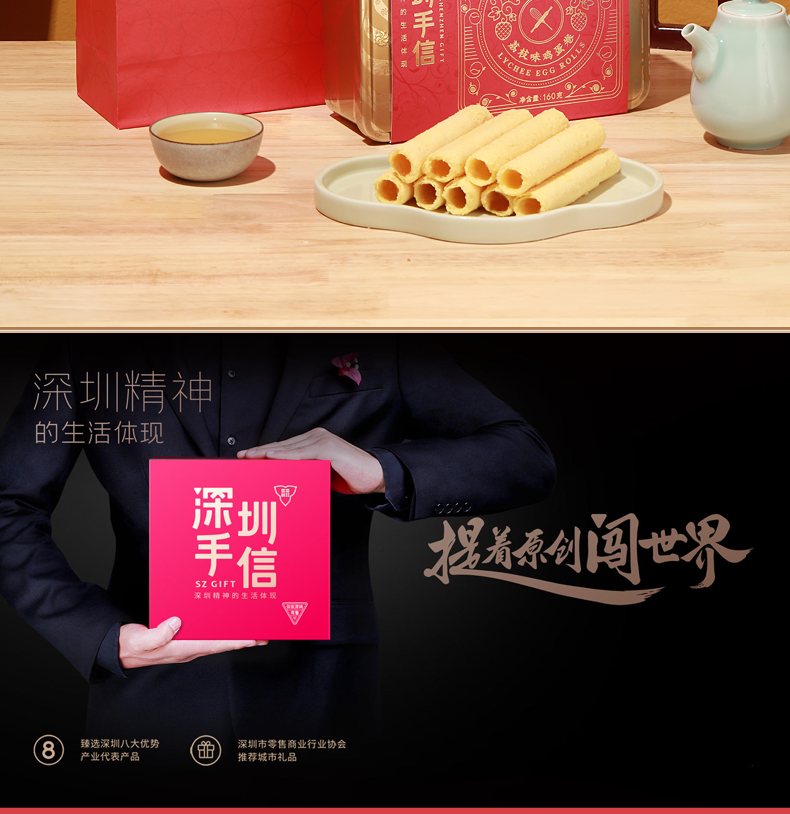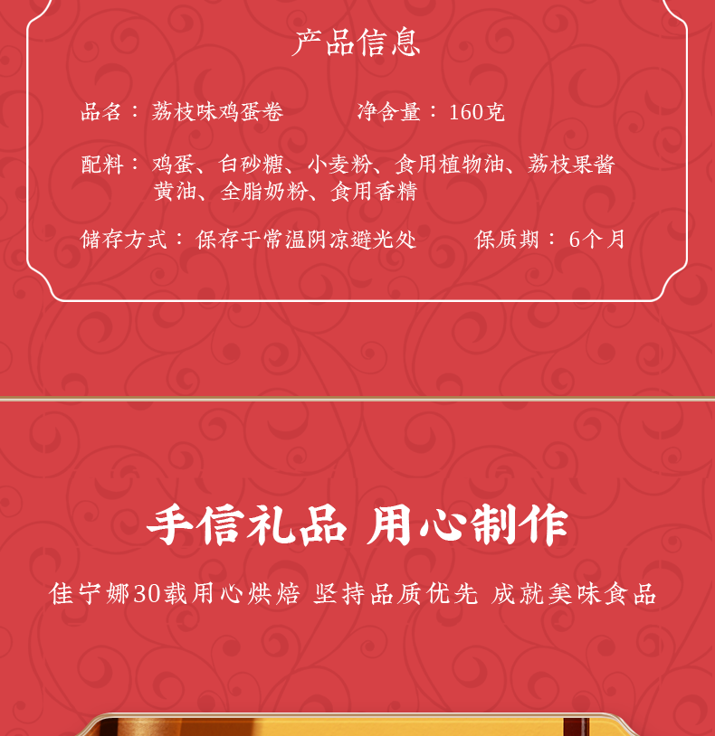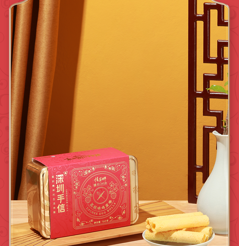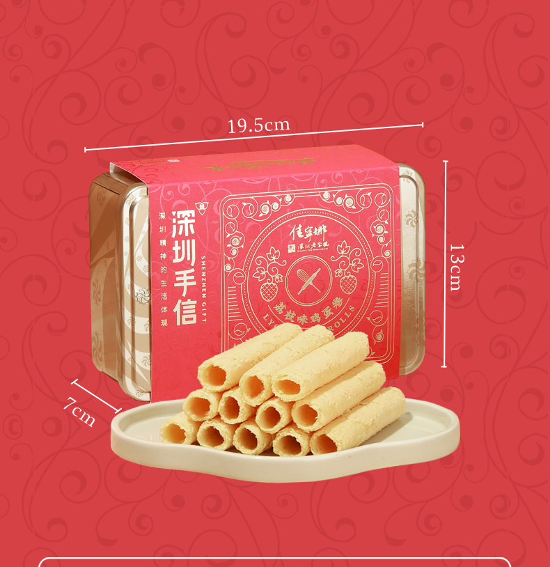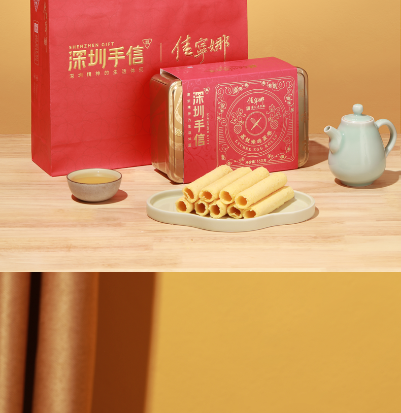 佳宁娜X深圳手信 荔枝味鸡蛋卷广东特产办公室零食下午茶礼盒装160克