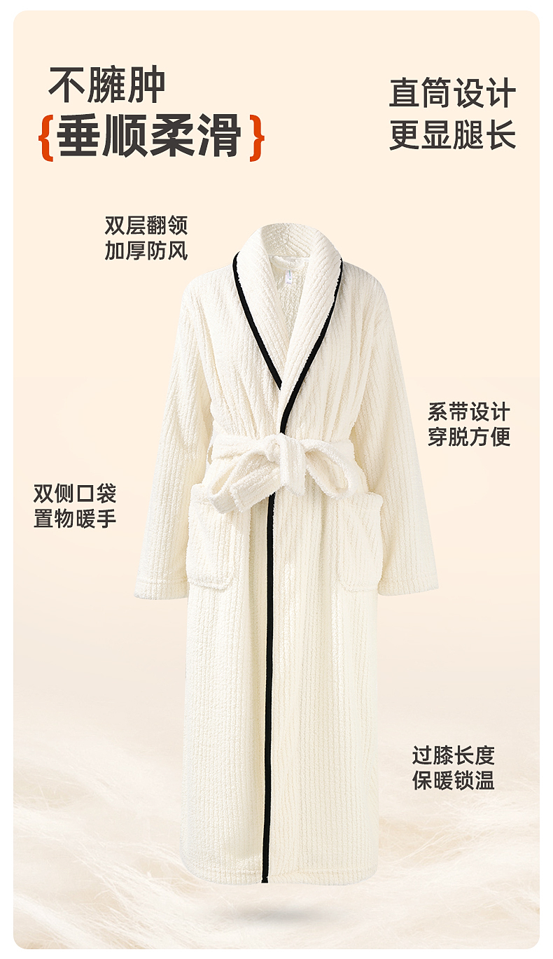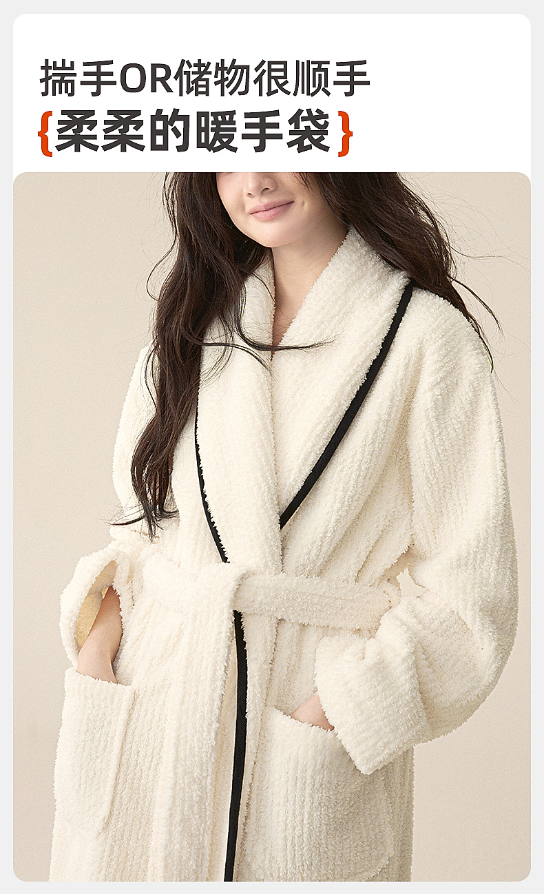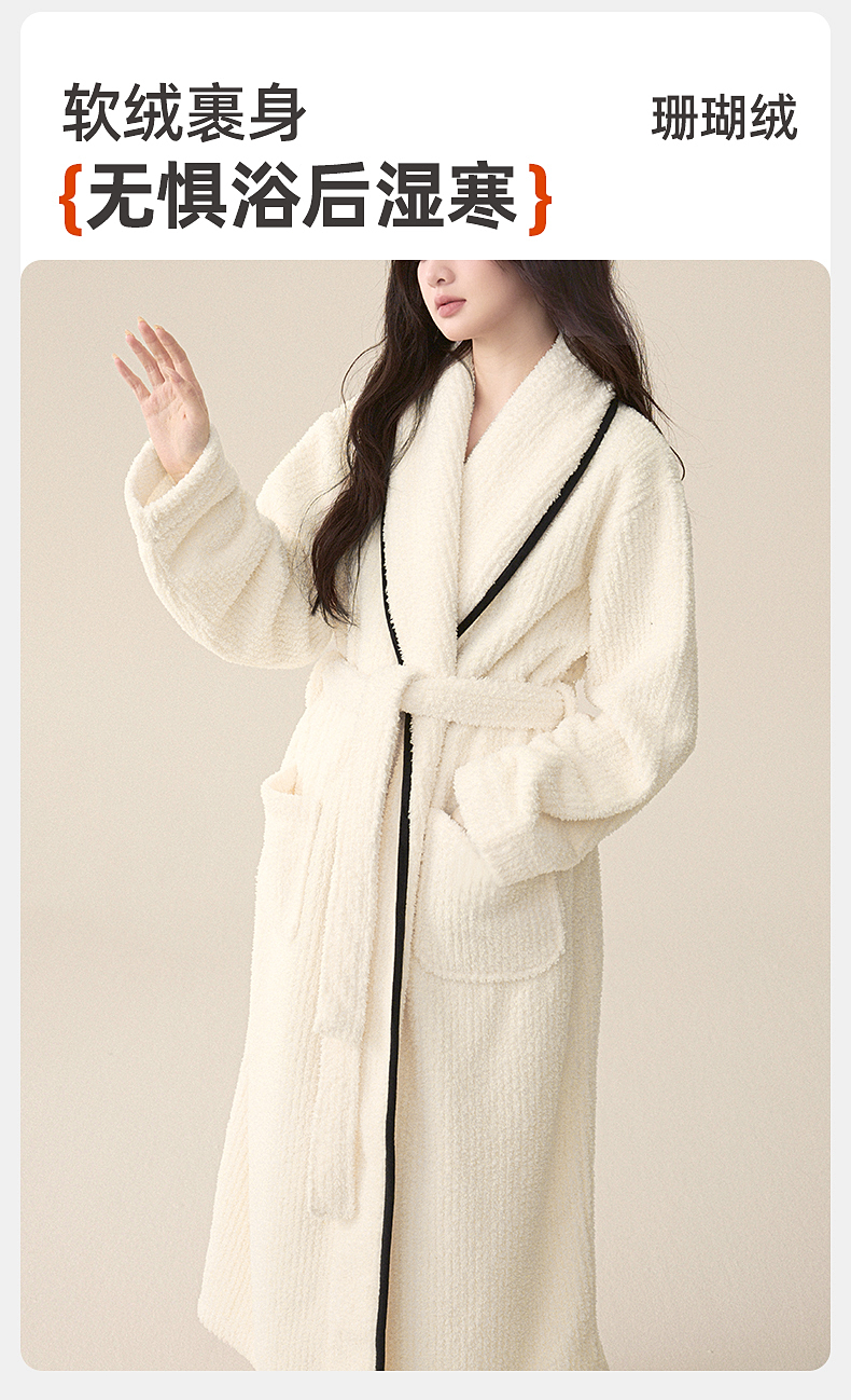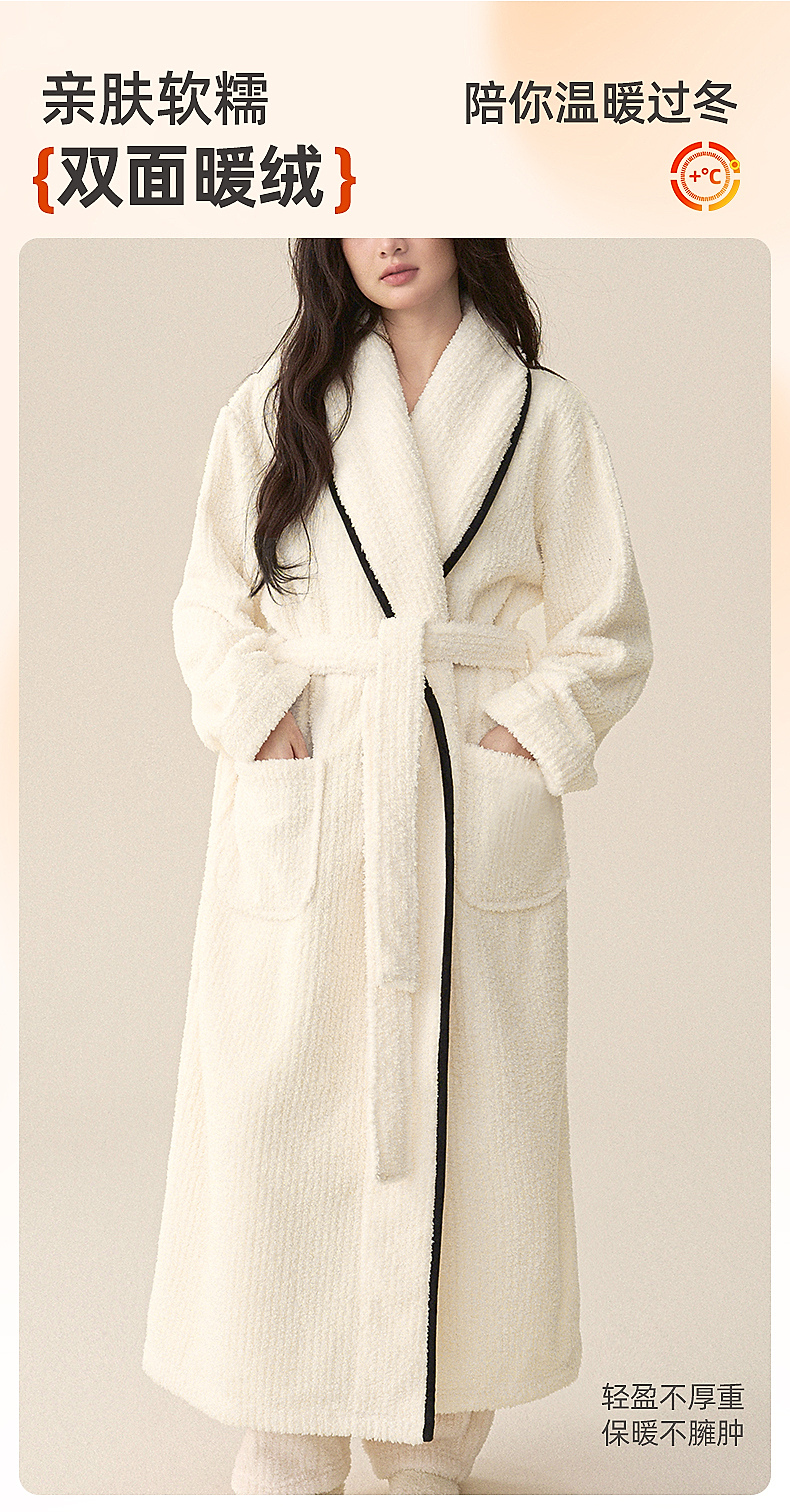雅黛俪女士加绒加厚保暖浴袍双面暖绒珊瑚绒居家睡衣睡袍冬季