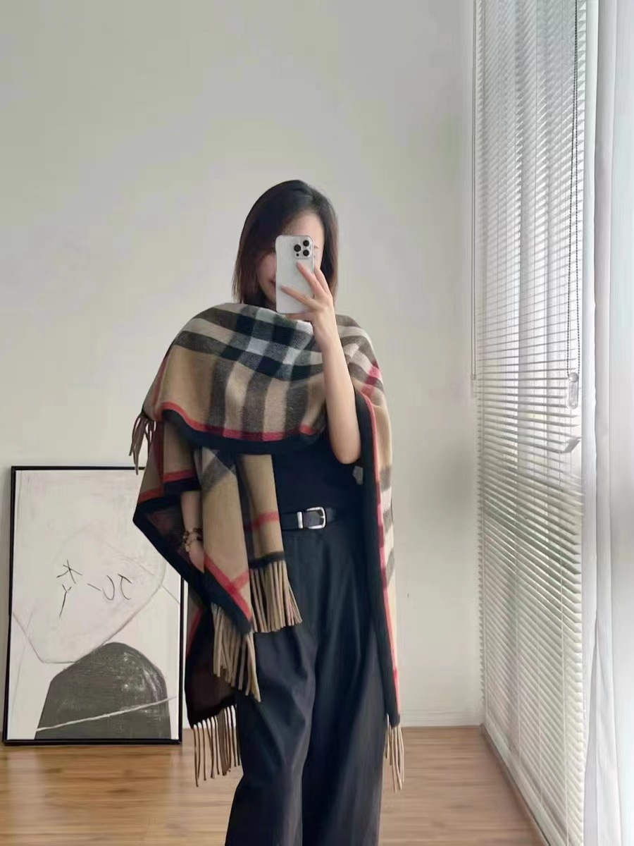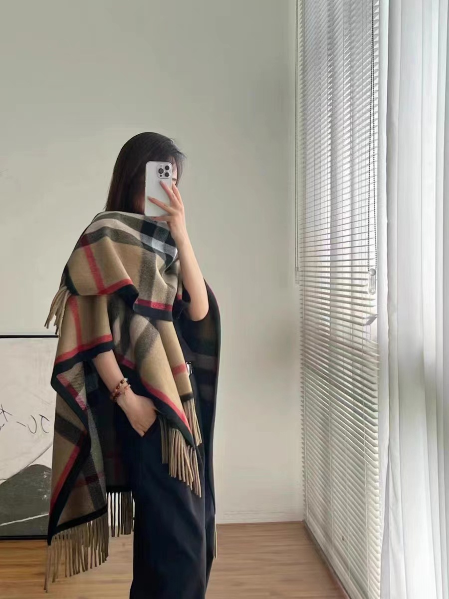 【披肩围巾两用!百搭格子】舒适保暖 面料柔软透气 让肌肤自由畅快呼吸不论手感还是体感。秋冬季百搭格子保暖披风经典爆款流苏外搭斗篷