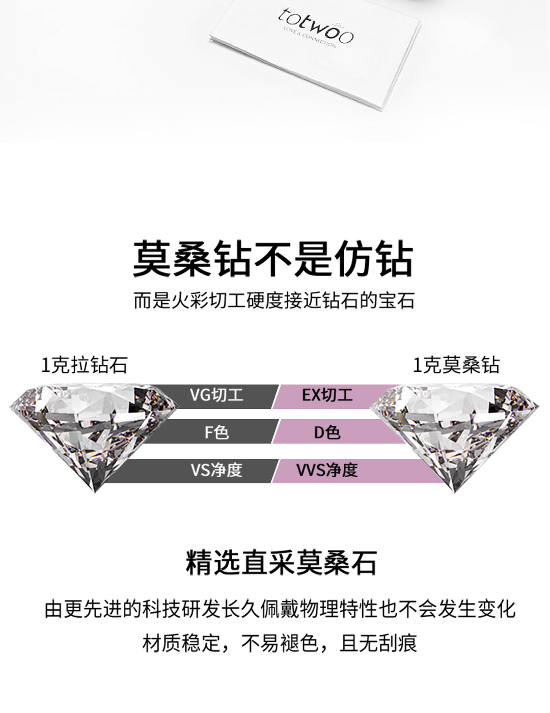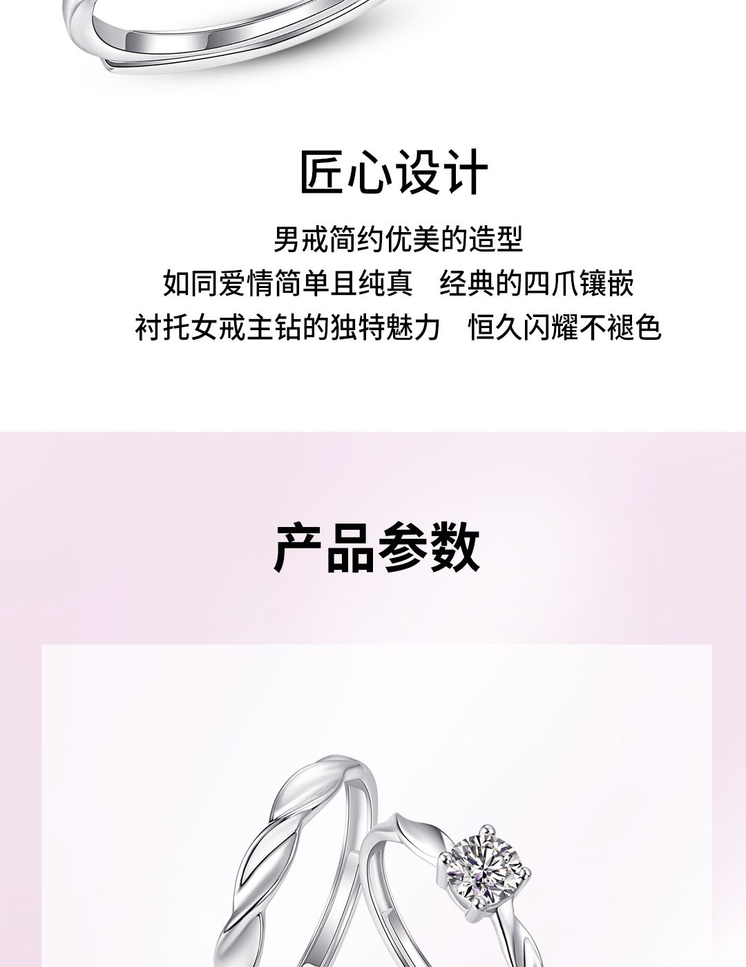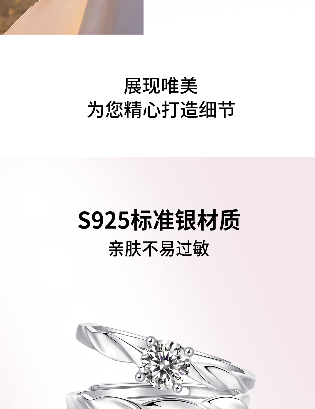 totwoo x 意中人情侣对戒925纯银莫桑石戒指结婚求婚开口戒可调节