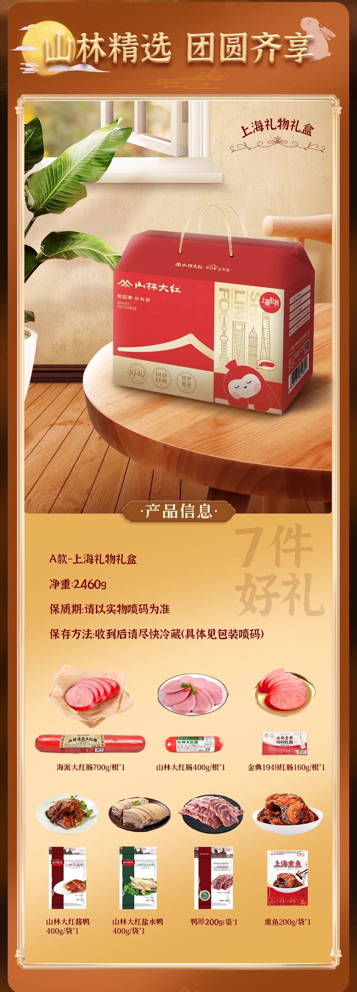 山林大红熟食中秋礼盒即食卤味高档送礼上海特产大礼包送长辈礼品