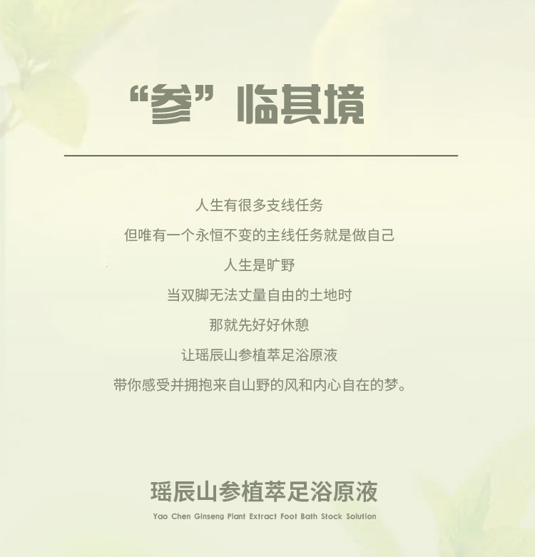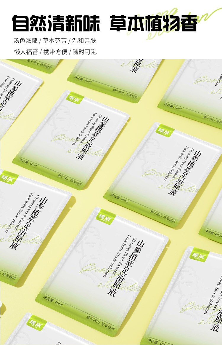【品名】【拍一发三】*姆线下同款 瑶辰山参植萃足浴原液 10包/袋 【规格】40g*10包/袋*3 【产地】国内 【保质期】3年 【发货包装】独立包装袋 【发货地】河南 【发货快递】韵达,邮政,极兔 【不发货区域】新疆,西藏,港澳台 【发货时效】48-72小时,周末节假日顺延 |