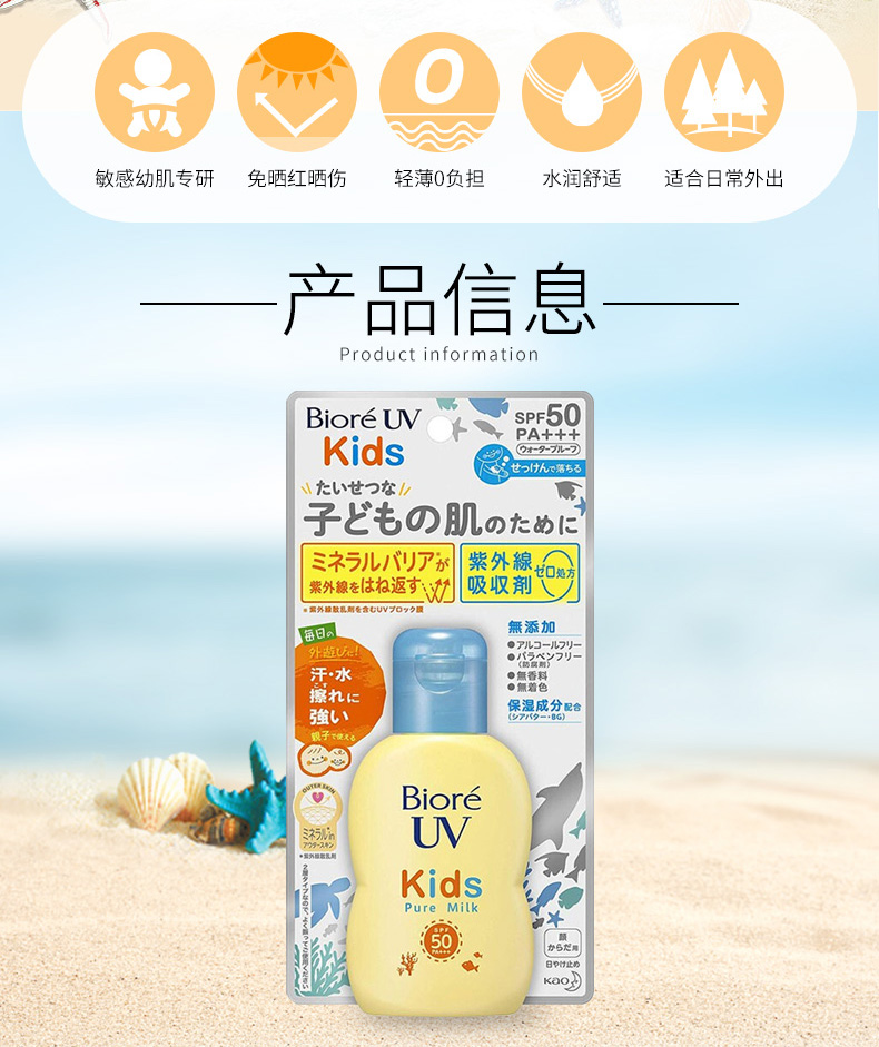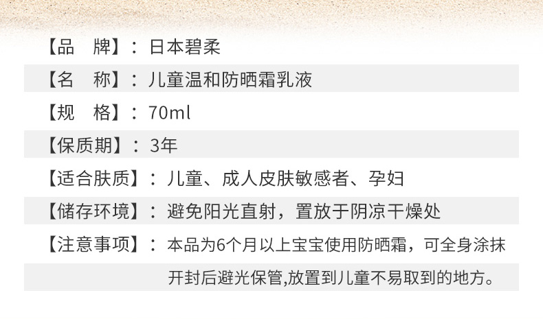 【保税仓】日本Biore碧柔婴幼儿童防晒霜70ml宝宝敏感肌物理防晒乳SPF50+++