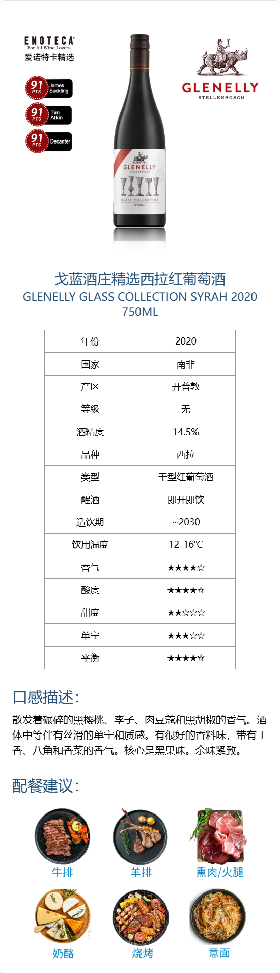 【南非高分西拉】Glenelly Glass Collection Syrah 2020 750Ml