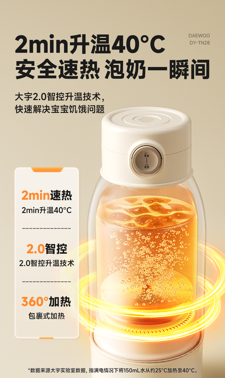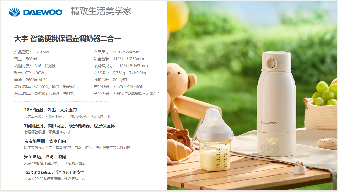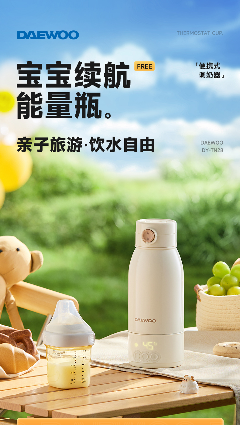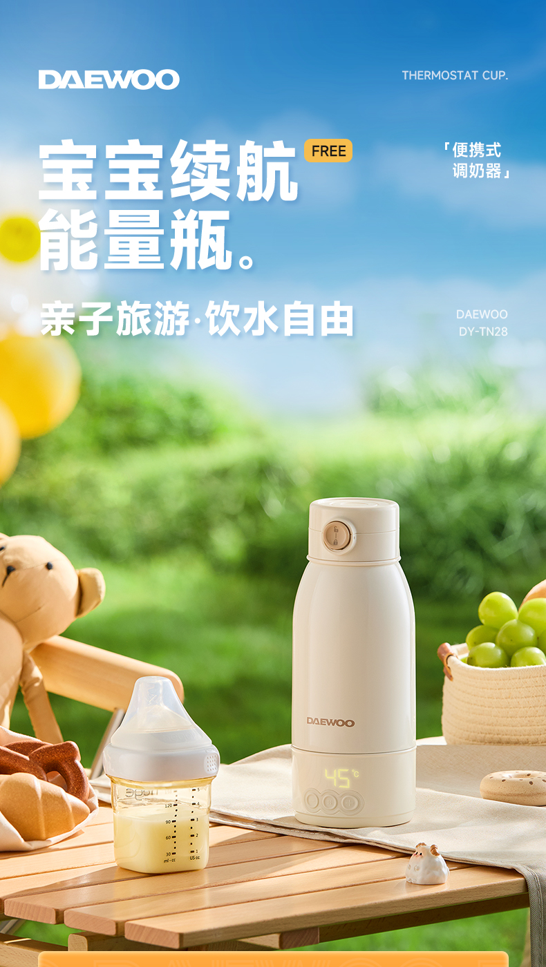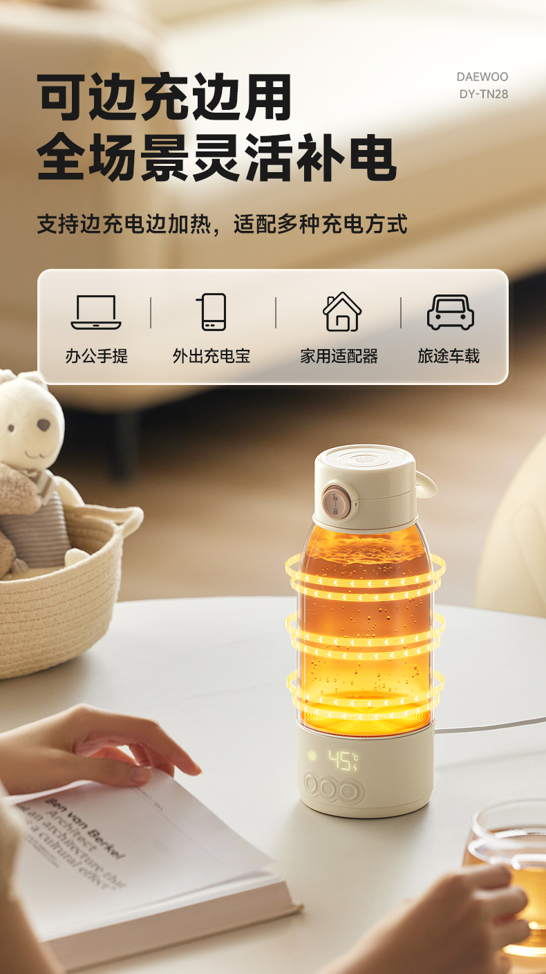 大宇新品便携式无线调奶器保温杯宝宝恒温水杯TN28