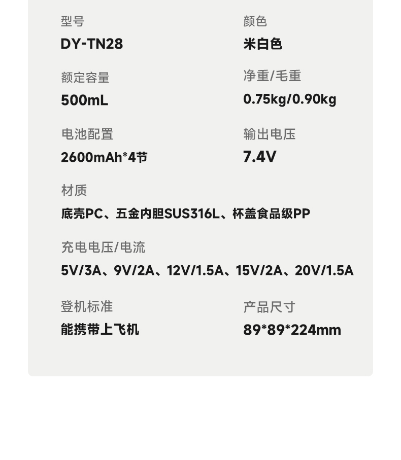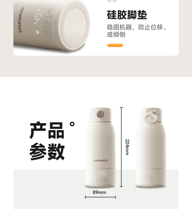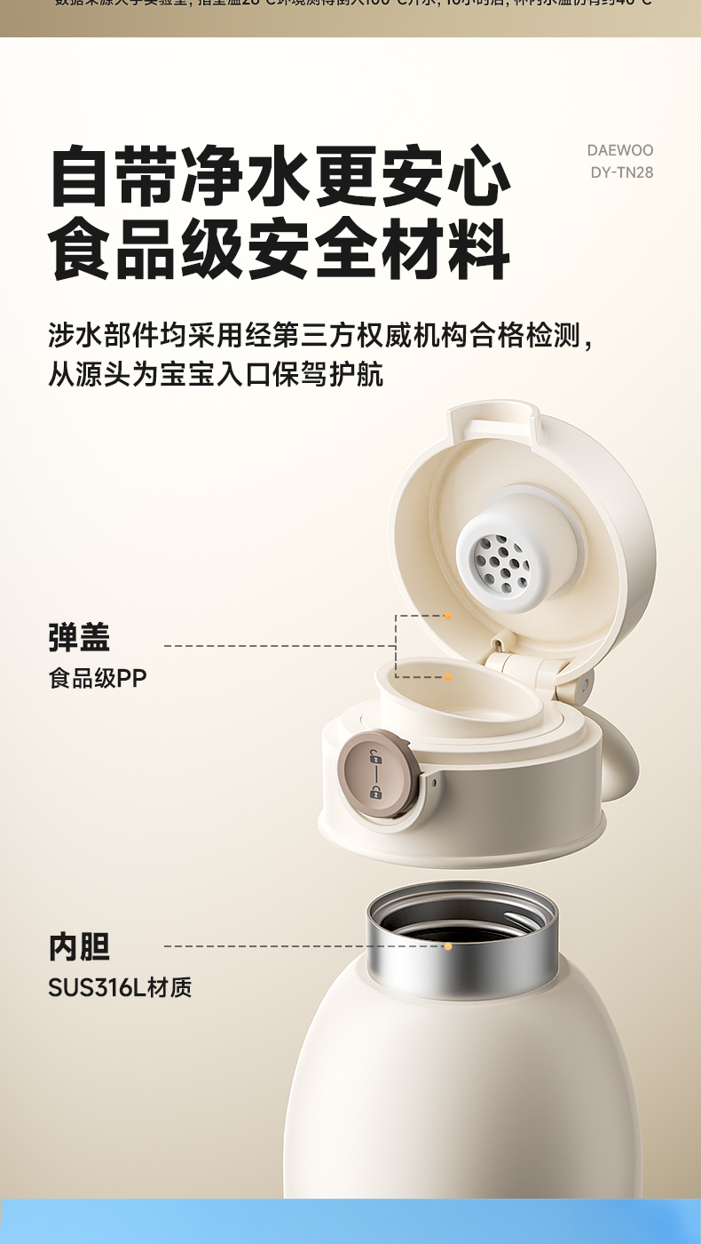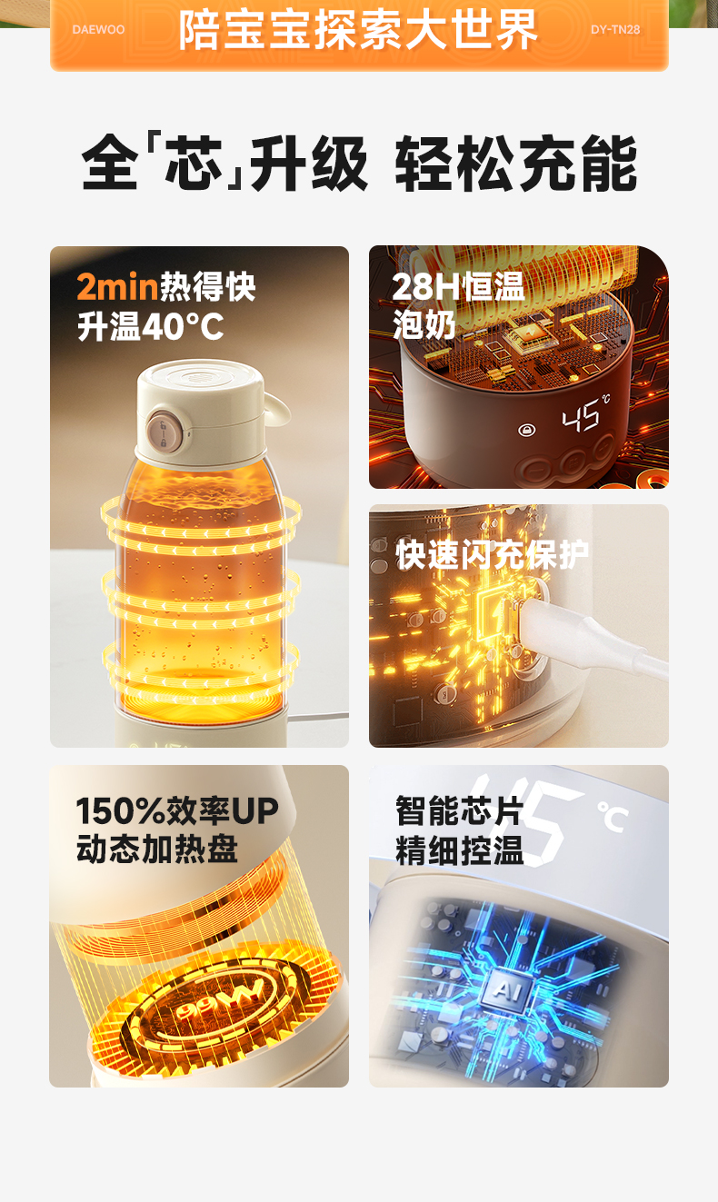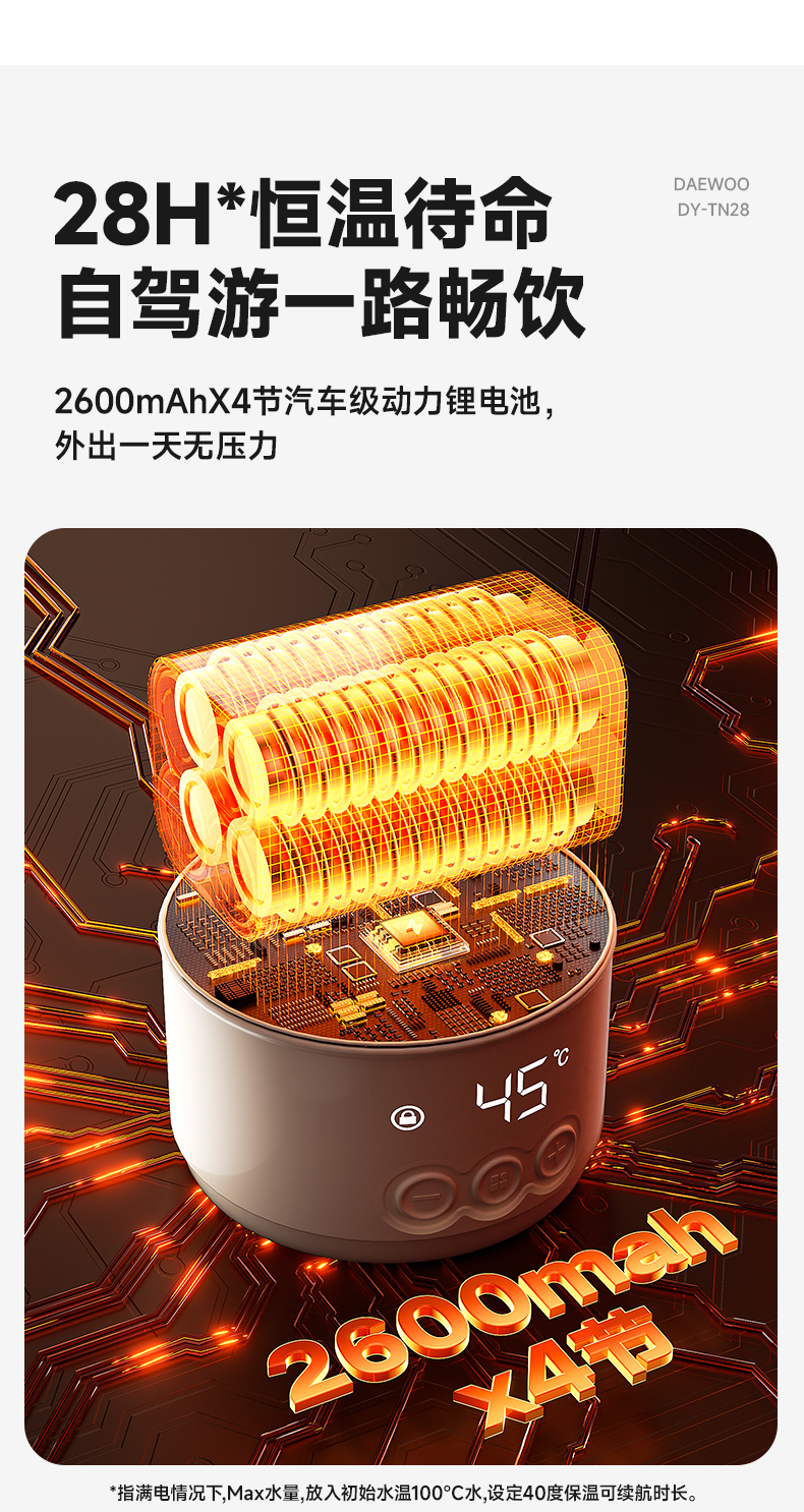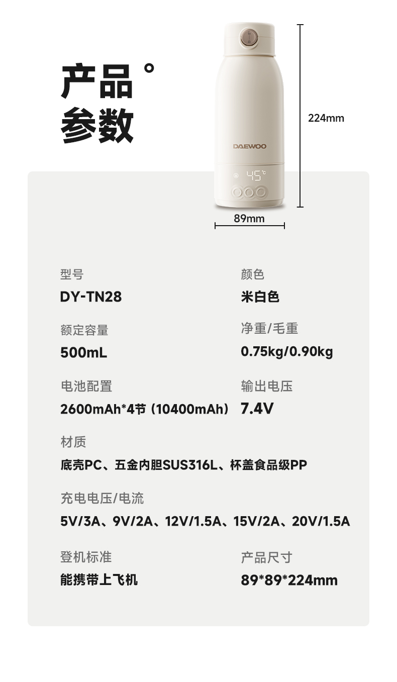 大宇新品便携式无线调奶器保温杯宝宝恒温水杯TN28