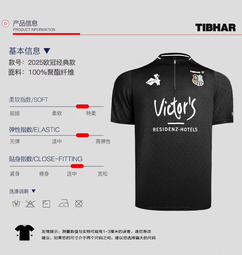 TIBHAR挺拔 2025欧冠大赛服 乒乓球短袖 比赛服 国球汇