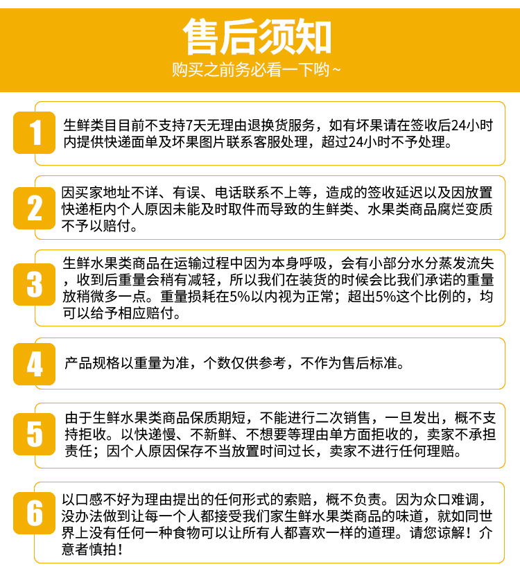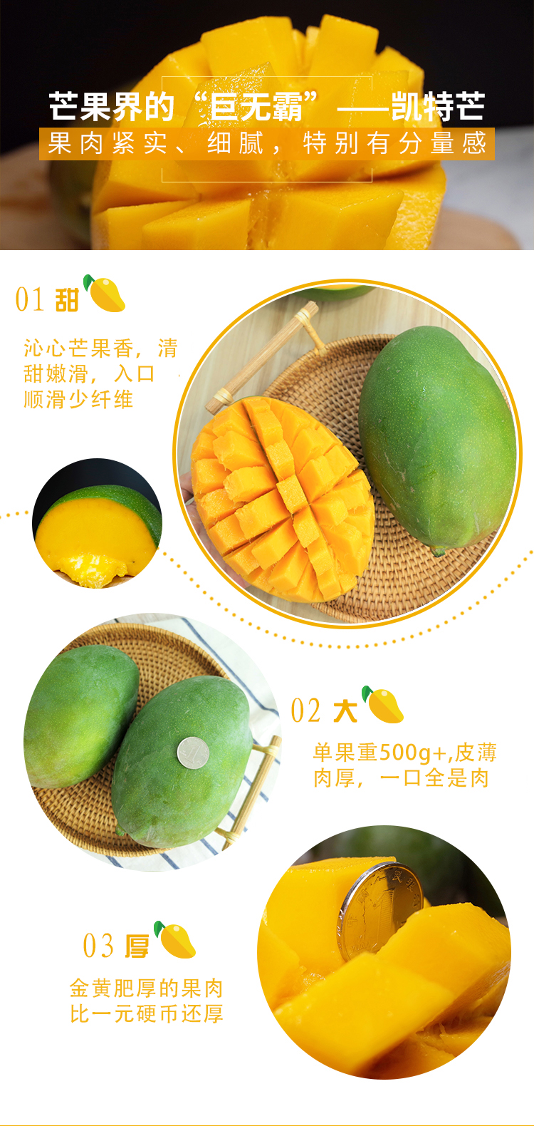 1.芒果发货为6-7分成熟的果,若收到芒果未成熟,请将芒果催熟后再食用,口感会更加香甜哦
