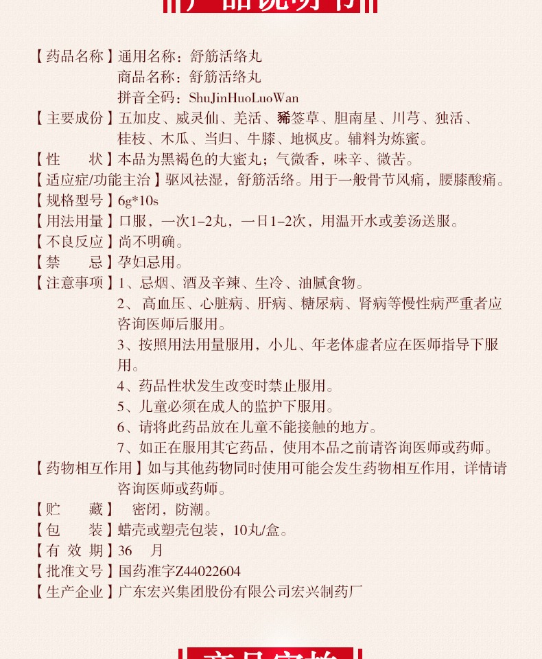 宏兴舒筋活络丸10丸腰膝酸痛驱风祛湿舒经活络用于一般骨节风痛
