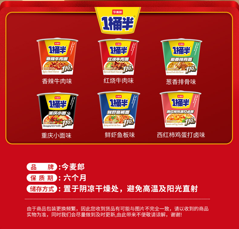 【店铺专享】【活动】今麦郎1桶半红烧牛肉重庆小面多口味桶装新老包装随机发