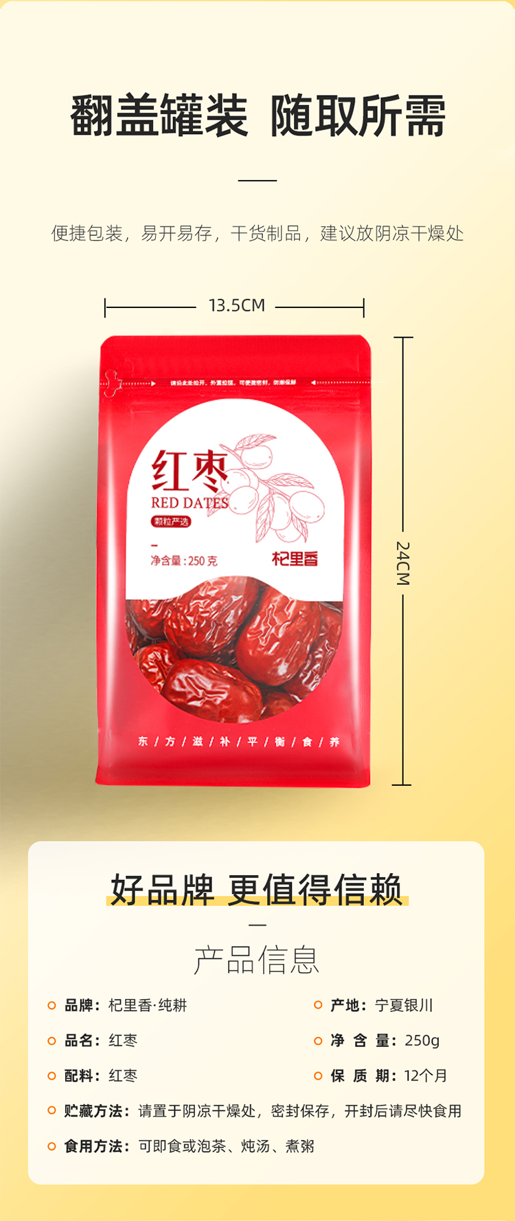 【好吃的】杞里香 新疆和田红枣 个大皮薄 核小肉多 250g/袋*3袋
