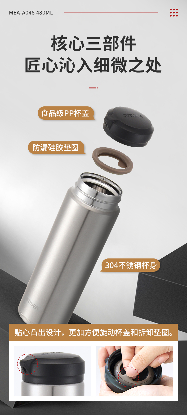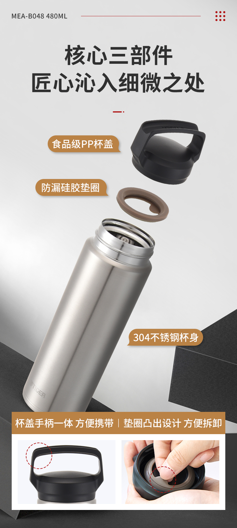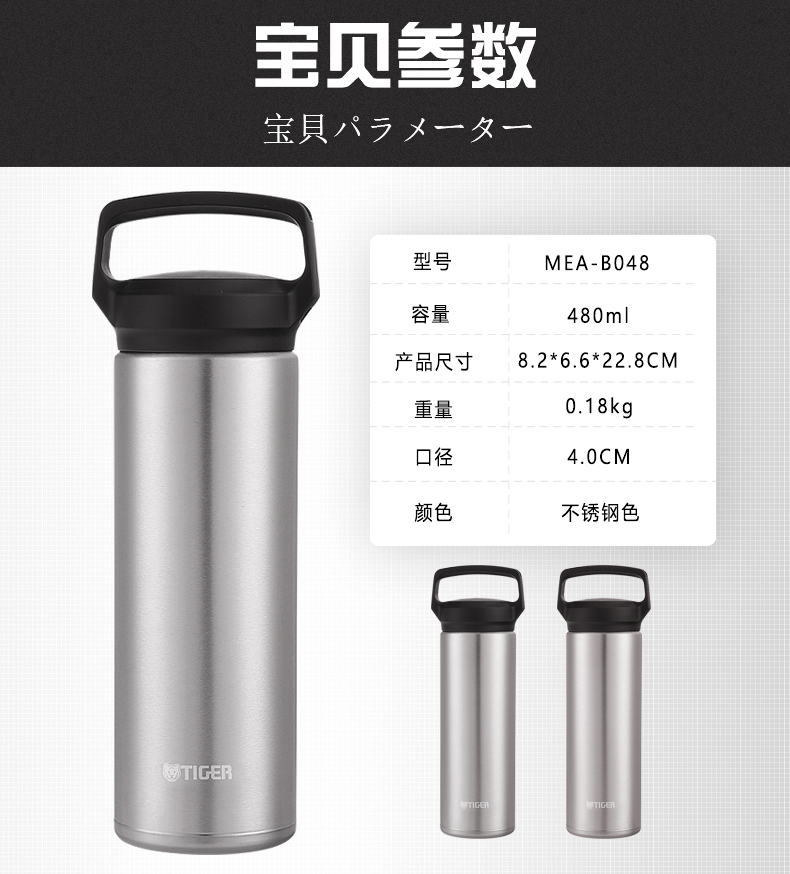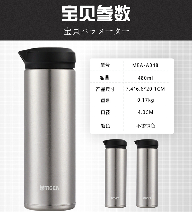 【6F】Tiger/虎牌不锈钢真空保温杯MEA-A048 商务便携水杯子 MEA-B048