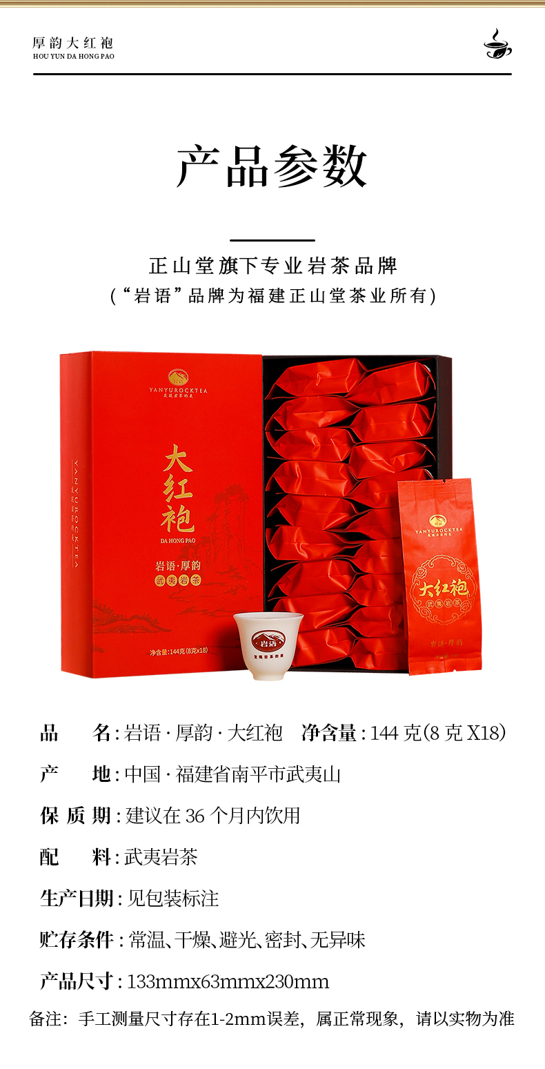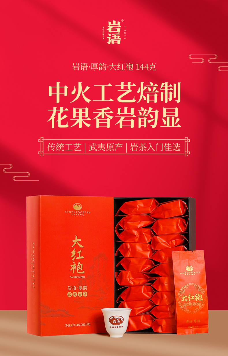 岩语 厚韵中火大红袍 特级武夷岩茶乌龙茶花香茶叶盒装送礼144g