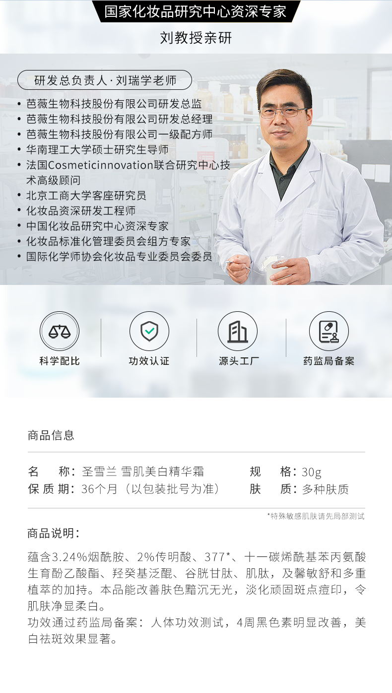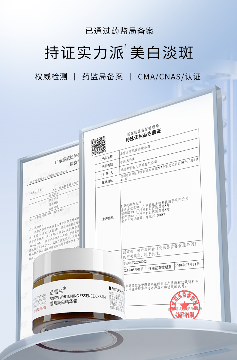 【自营】圣雪兰 雪肌美白霜 药监局特证,3.24%烟酰胺+22%传明酸+377三管齐下 4周去黄淡化斑点