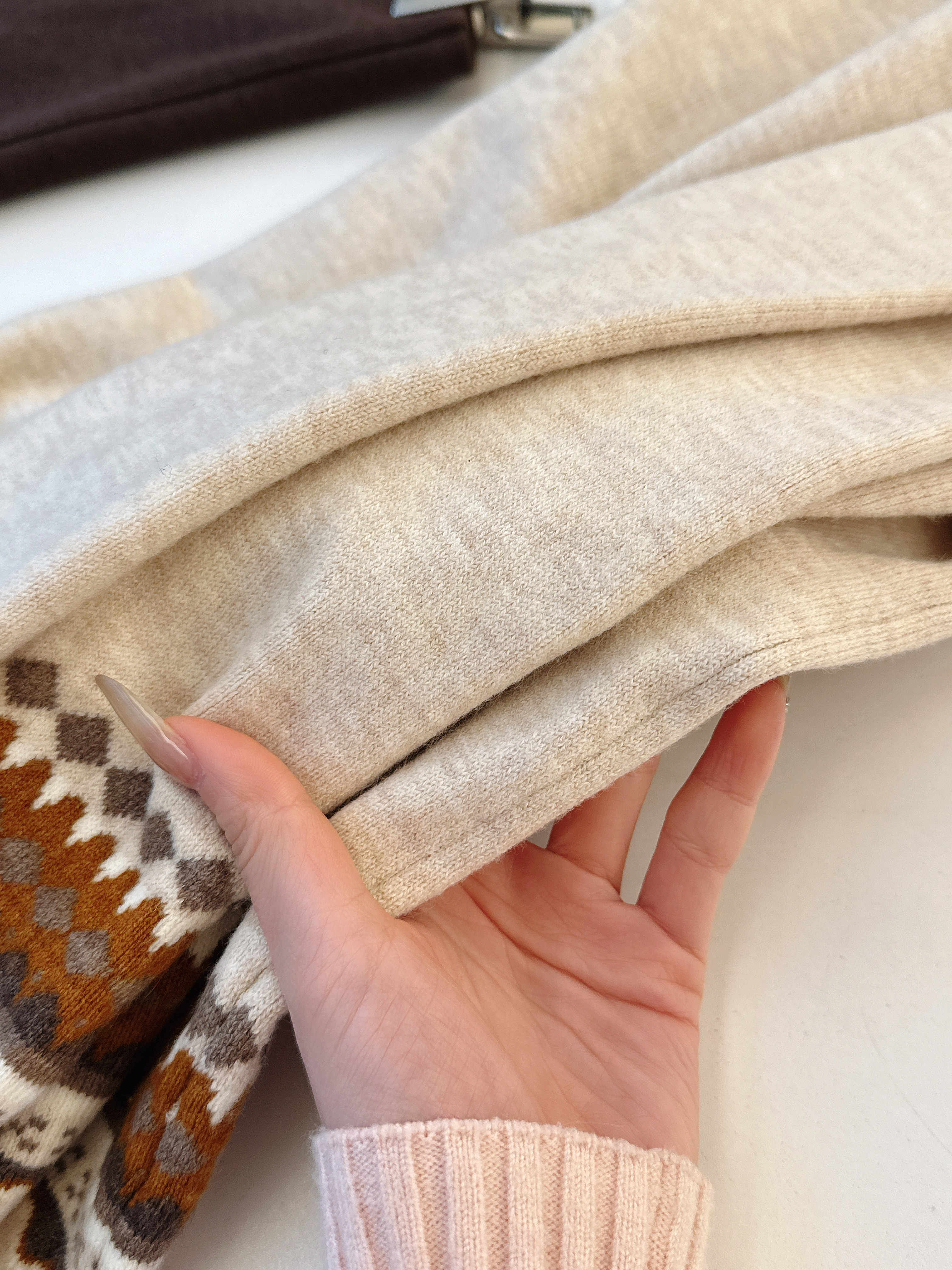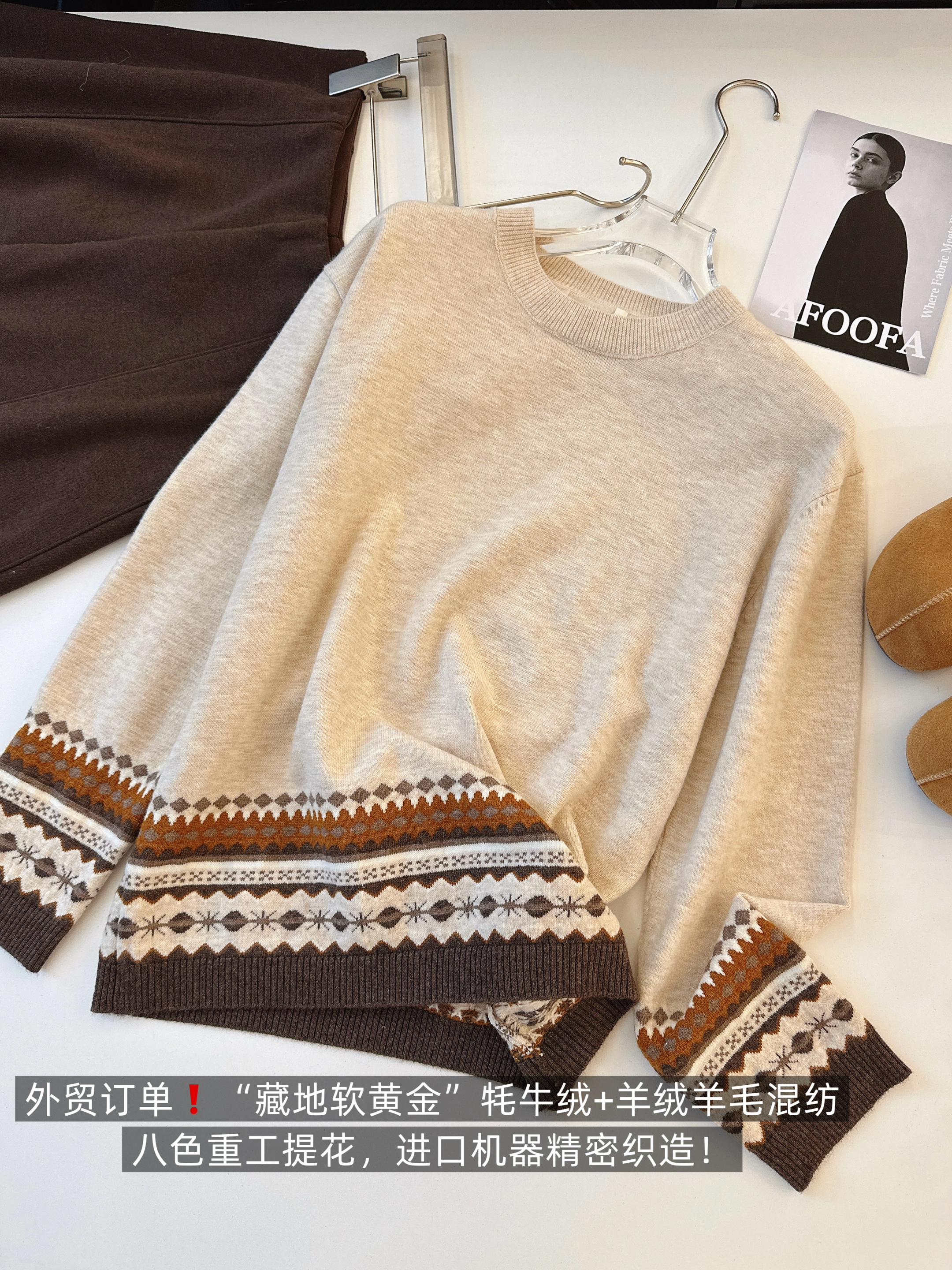 64%绵羊毛、25%牦牛绒、11%山羊绒定纺细纱!细腻柔光,亲肤!轻盈柔软如云朵。