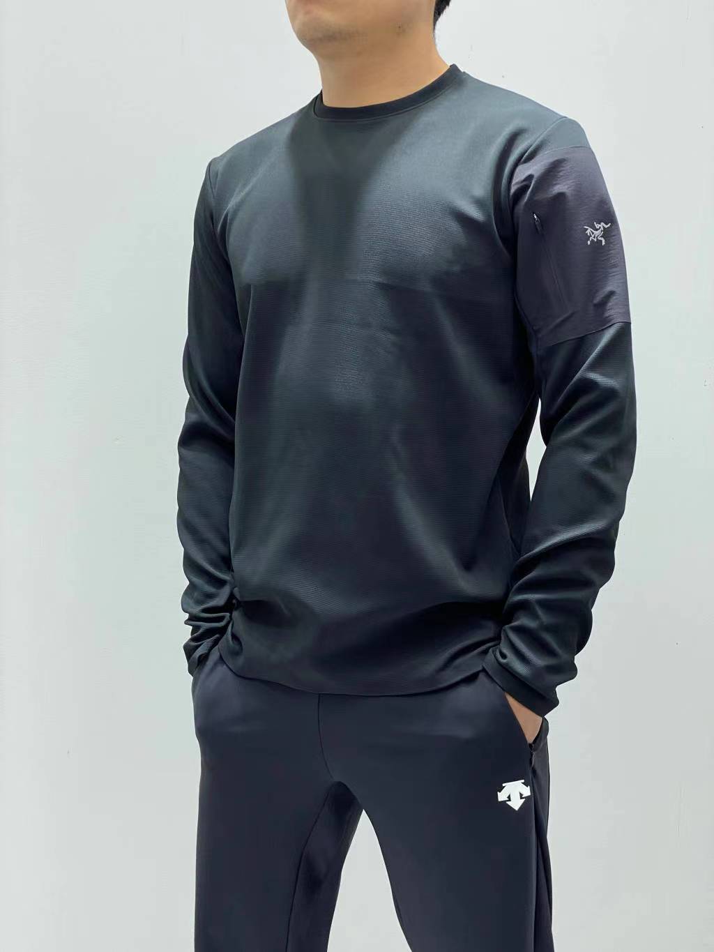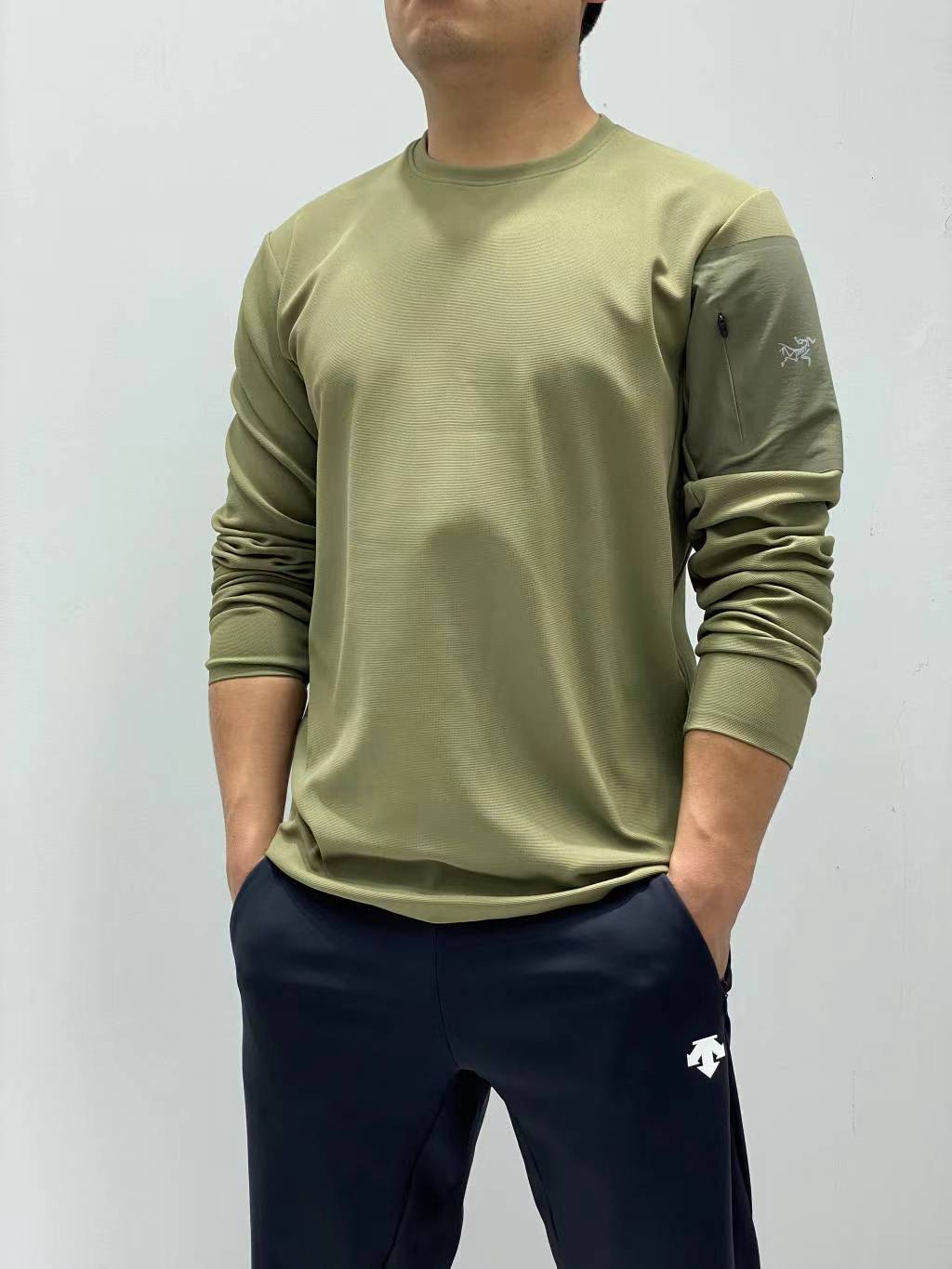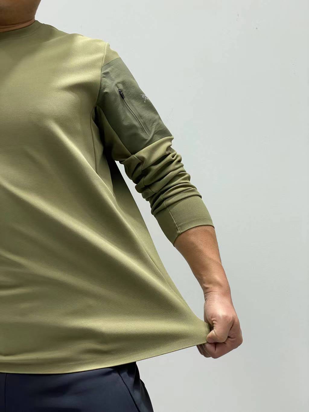 城市机能户外长袖圆领T恤 休闲长袖 袖臂贴袋卫衣!速干透气挺括有型!无侧缝结构设计减少衣物缝线,不易摩擦肌肤。采用由X-S技术添加氨纶,舒适伸展,不易变形网面结构!宽下摆设计,不易卷边宽松款型,长度及臀。TE定丰柔棉面料亲肤舒适吸湿排汗透气性+不闷热,宽松版型包容性好穿着舒适不束缚!圆领设计单穿与叠穿都好看!腋下采用立体裁剪设计手臂抬放伸缩自如,抬臂不卡手 不紧绷!罗纹弹性领口设计不易变形,高密弹力罗纹袖口与下摆防风保暖整体款式设计严谨注重贴合人体机能运动实用舒适。