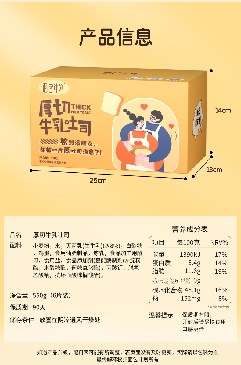 面包计划 厚切牛乳吐司面包 一箱550g/6包三种口味可随意拼【基地直邮到家】
