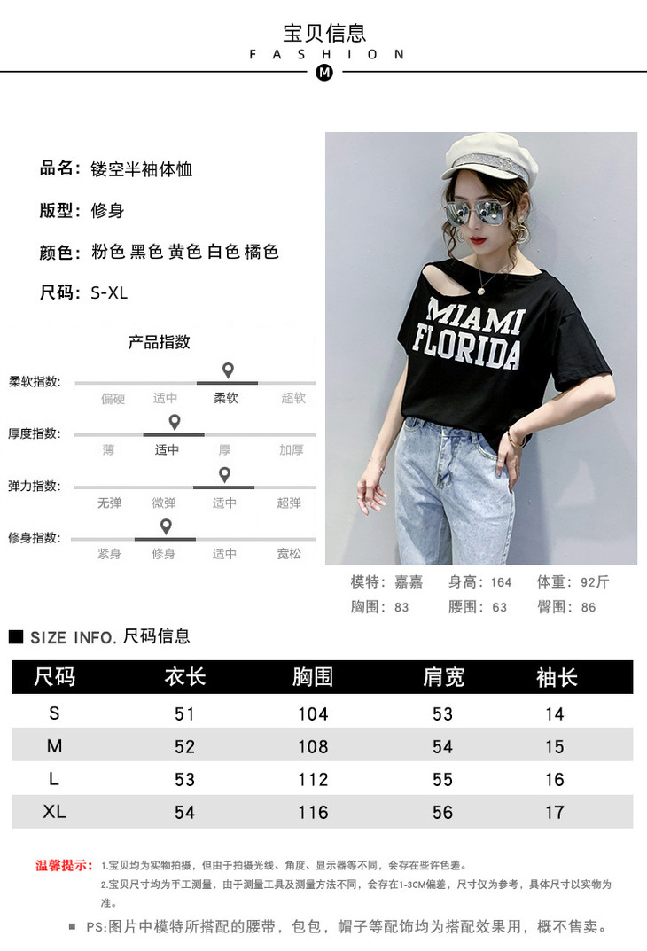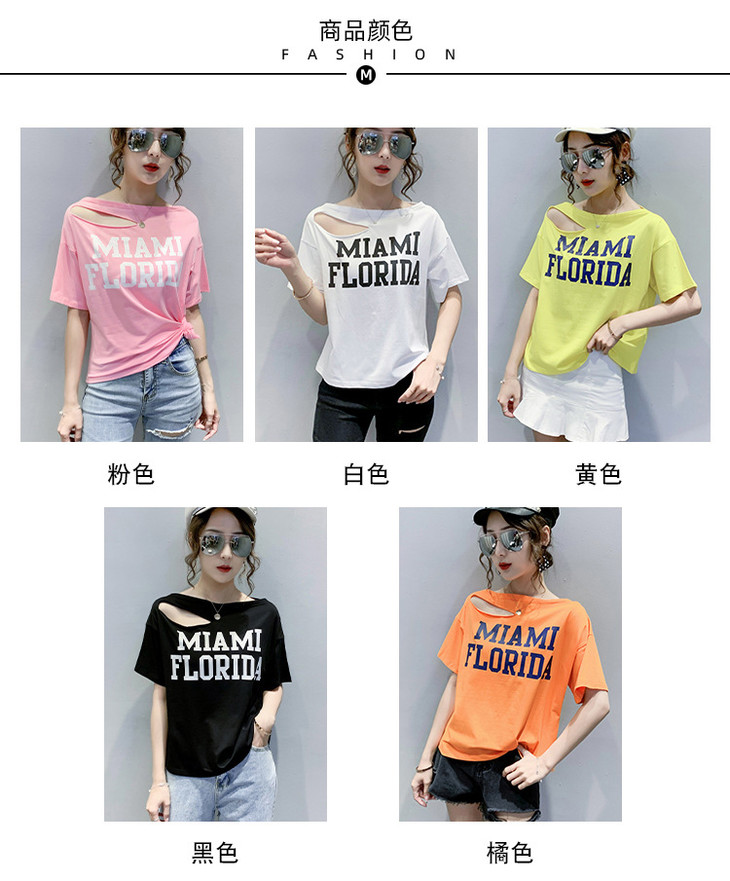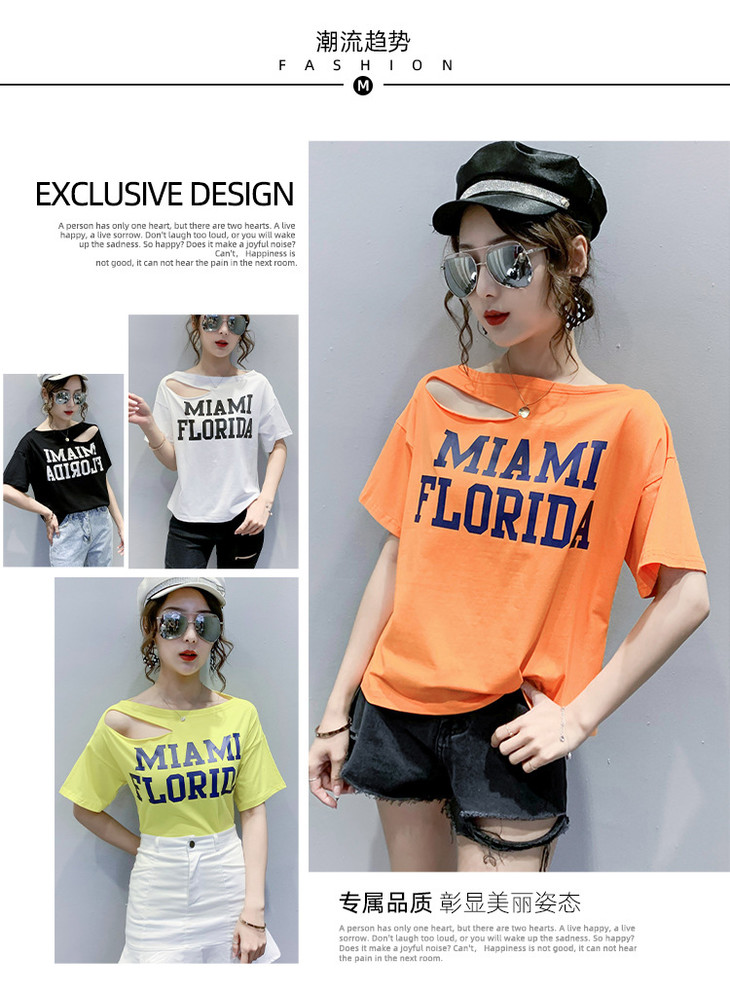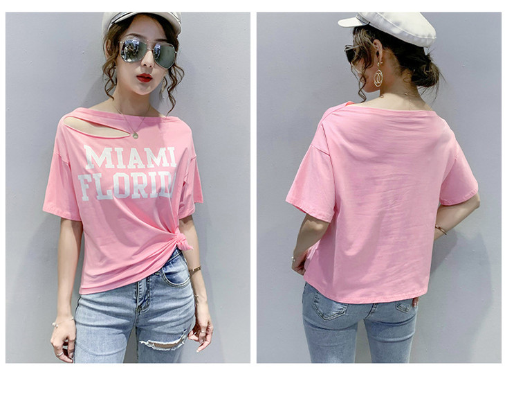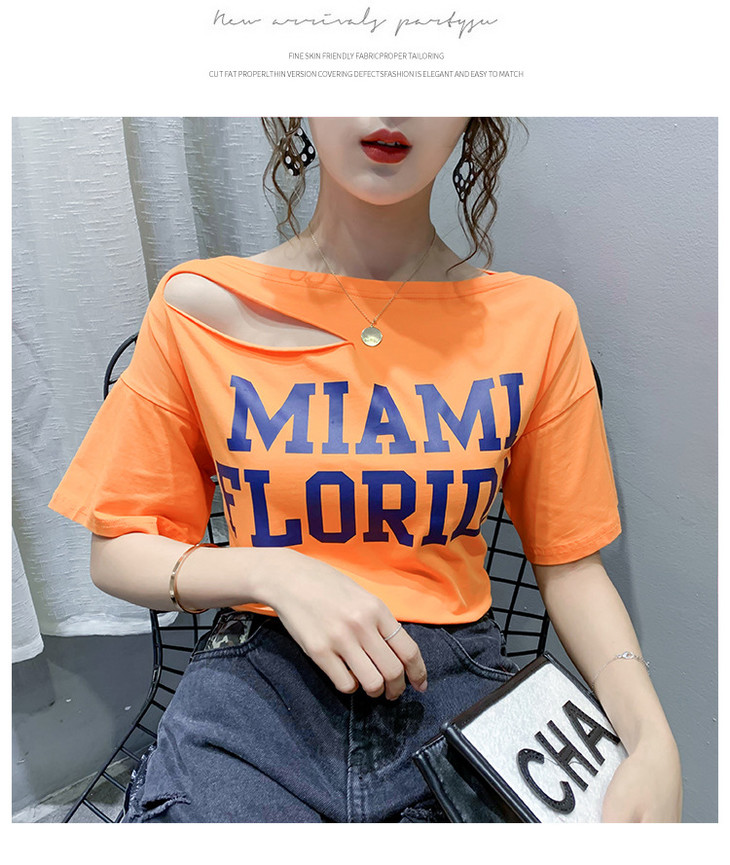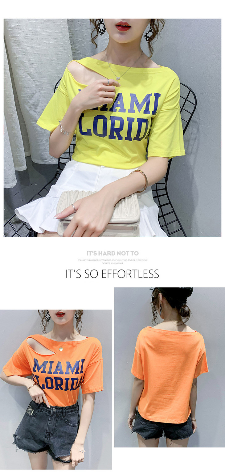 【女装】-露肩锁骨一字领宽松半袖上衣设计感小众短袖t恤女潮