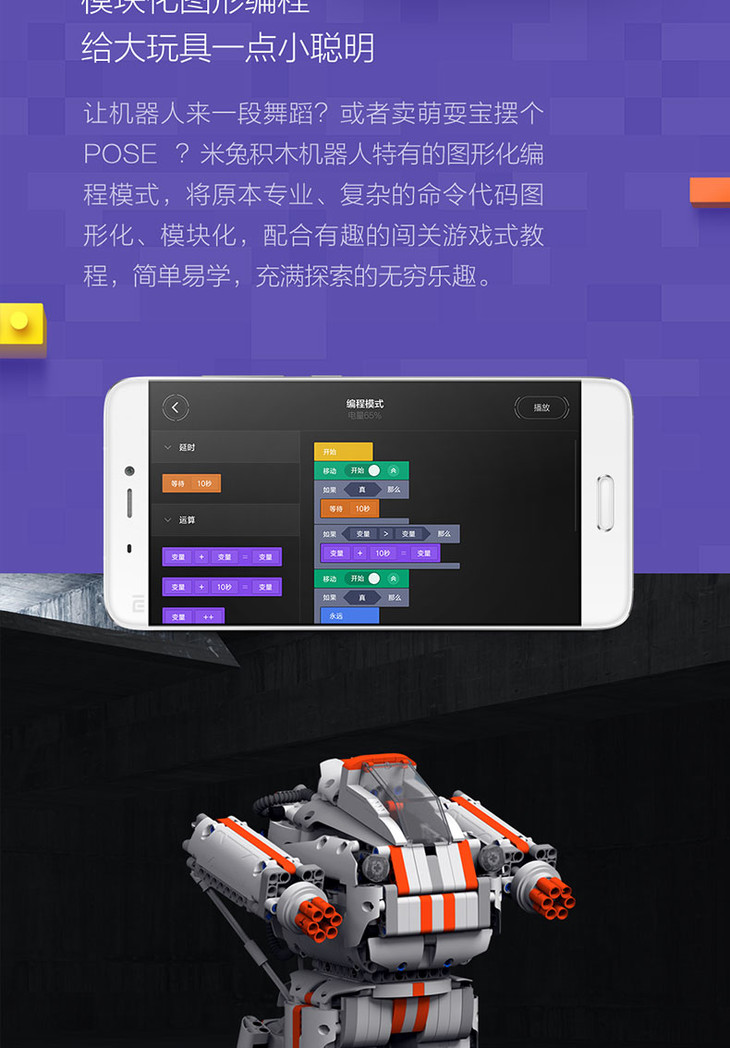 【正品】米兔积木机器人履带机甲智能拼装益智男孩电动编程玩具