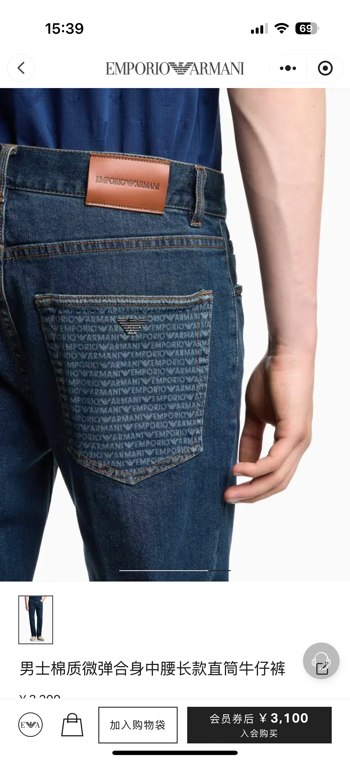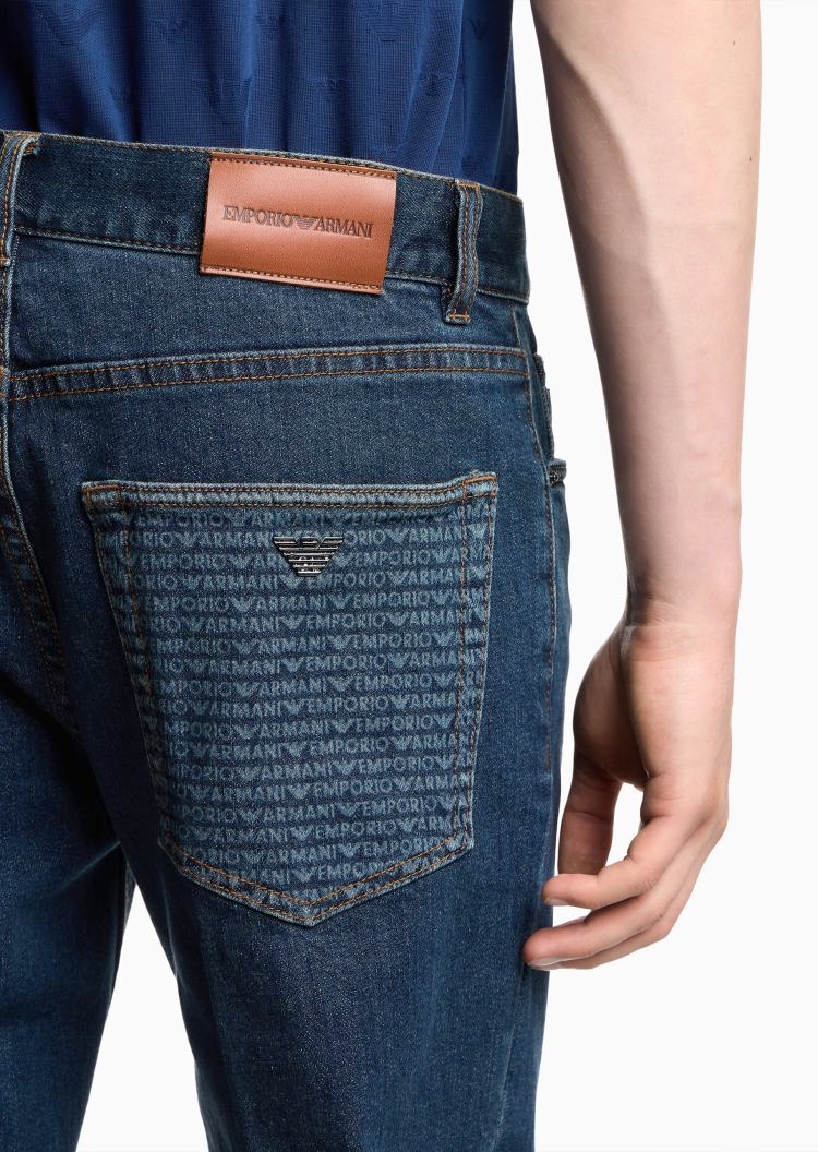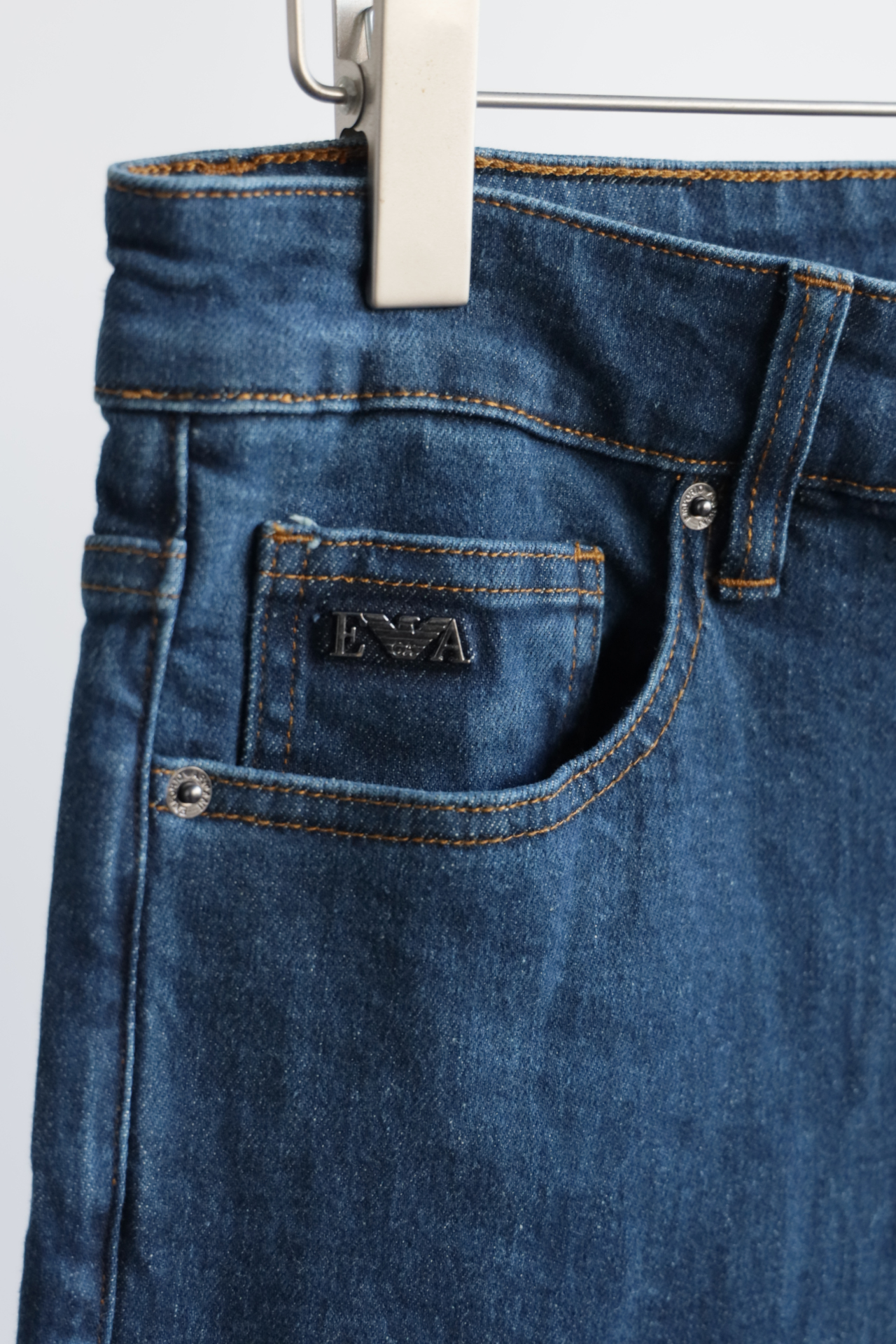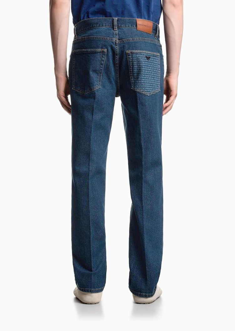 E@秋冬款 后袋水印图案 棉弹牛仔裤