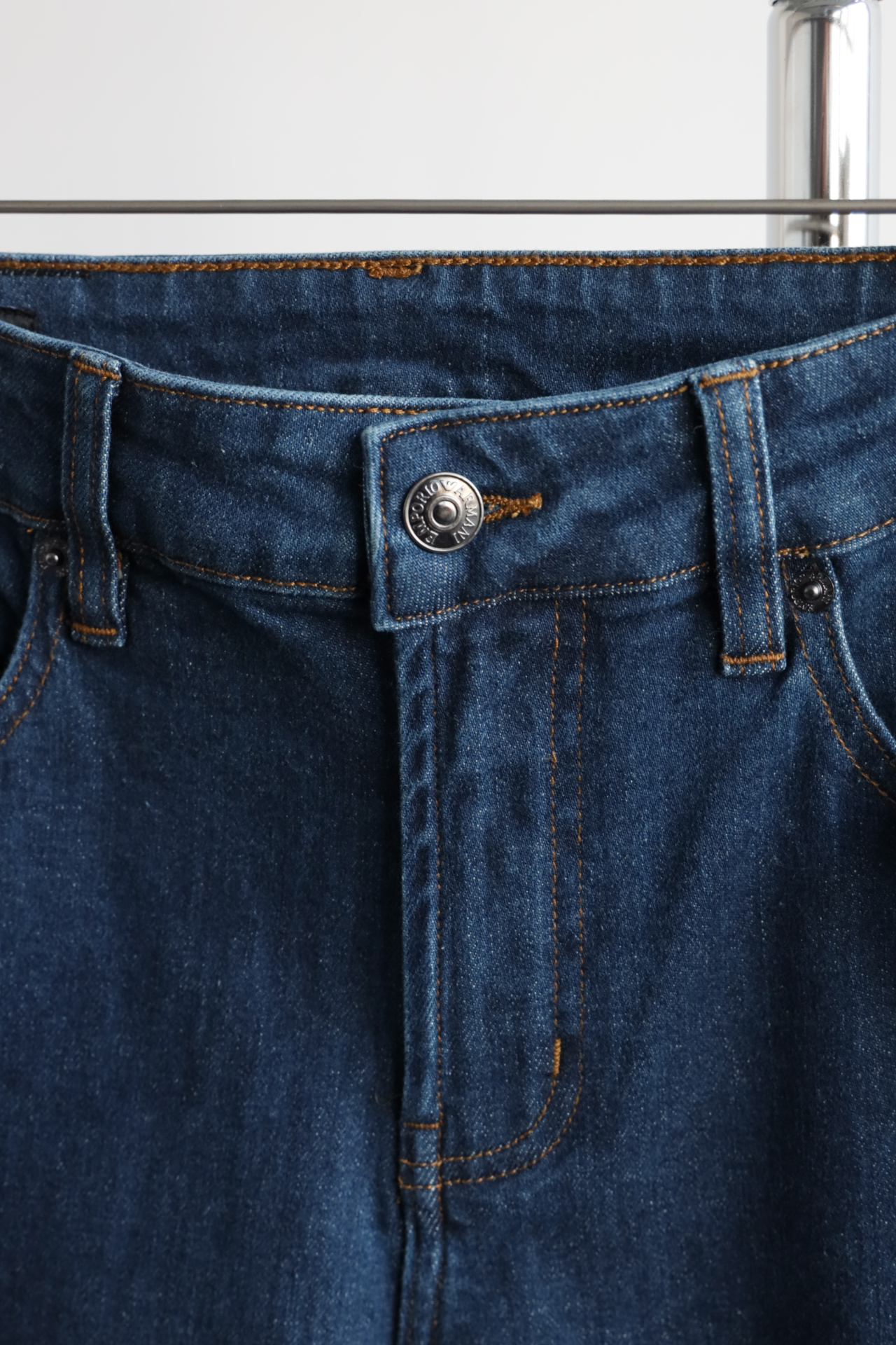 直筒中腰复古微弹休闲牛仔裤,此款牛仔裤采用棉质混纺面料制成,立体小直筒剪裁,包容腿型且行走自如。