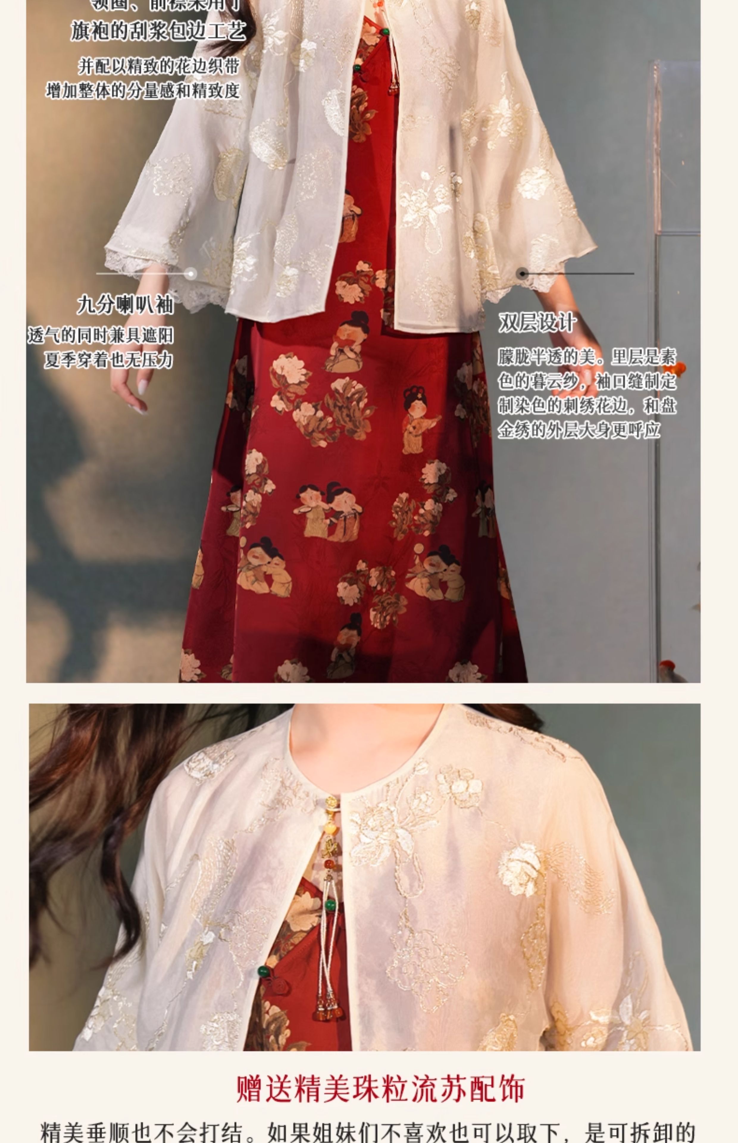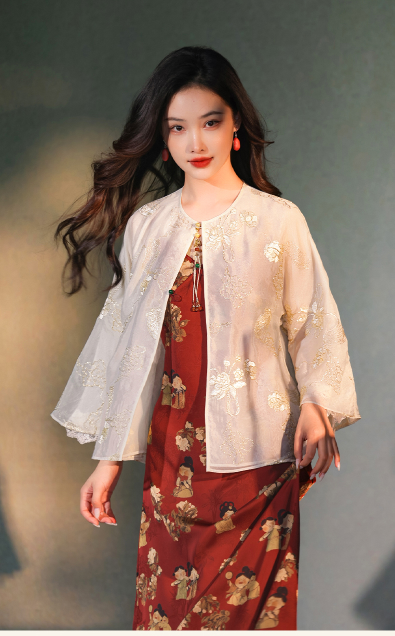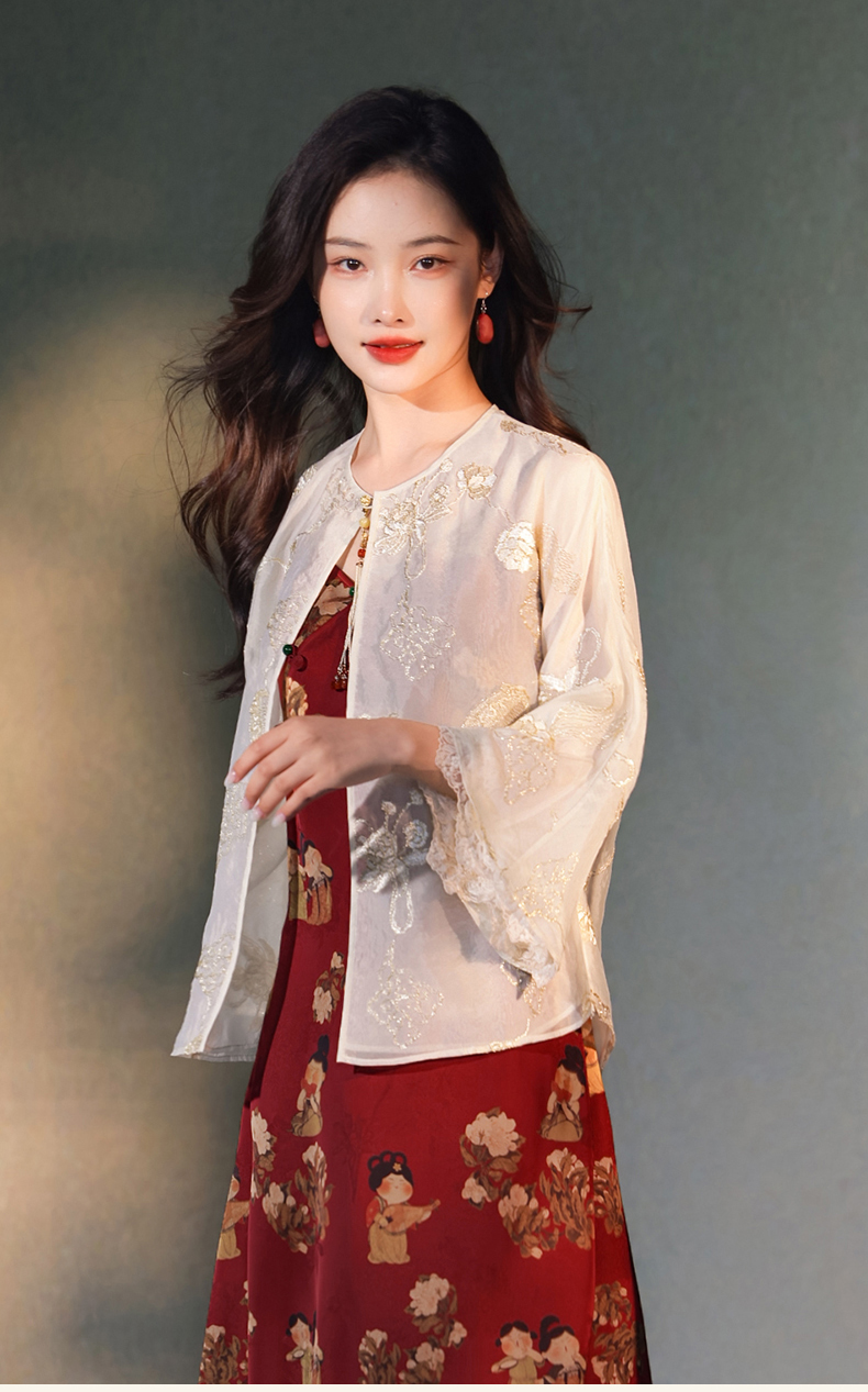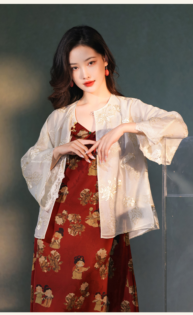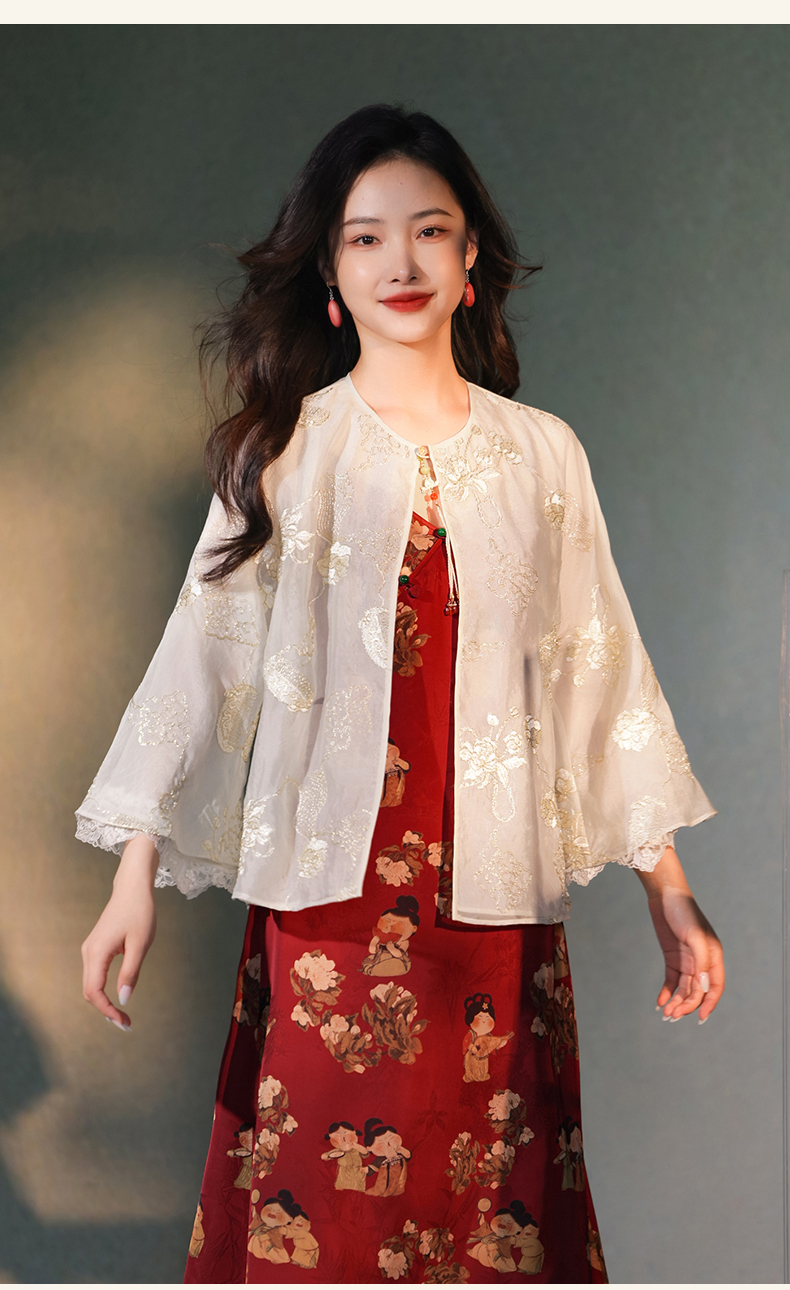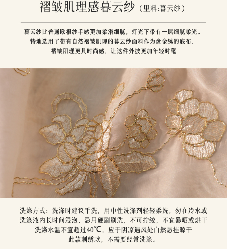 逸红颜梳澜2025早秋新款盘金绣暮云纱衣新中式双层半透防晒外披女